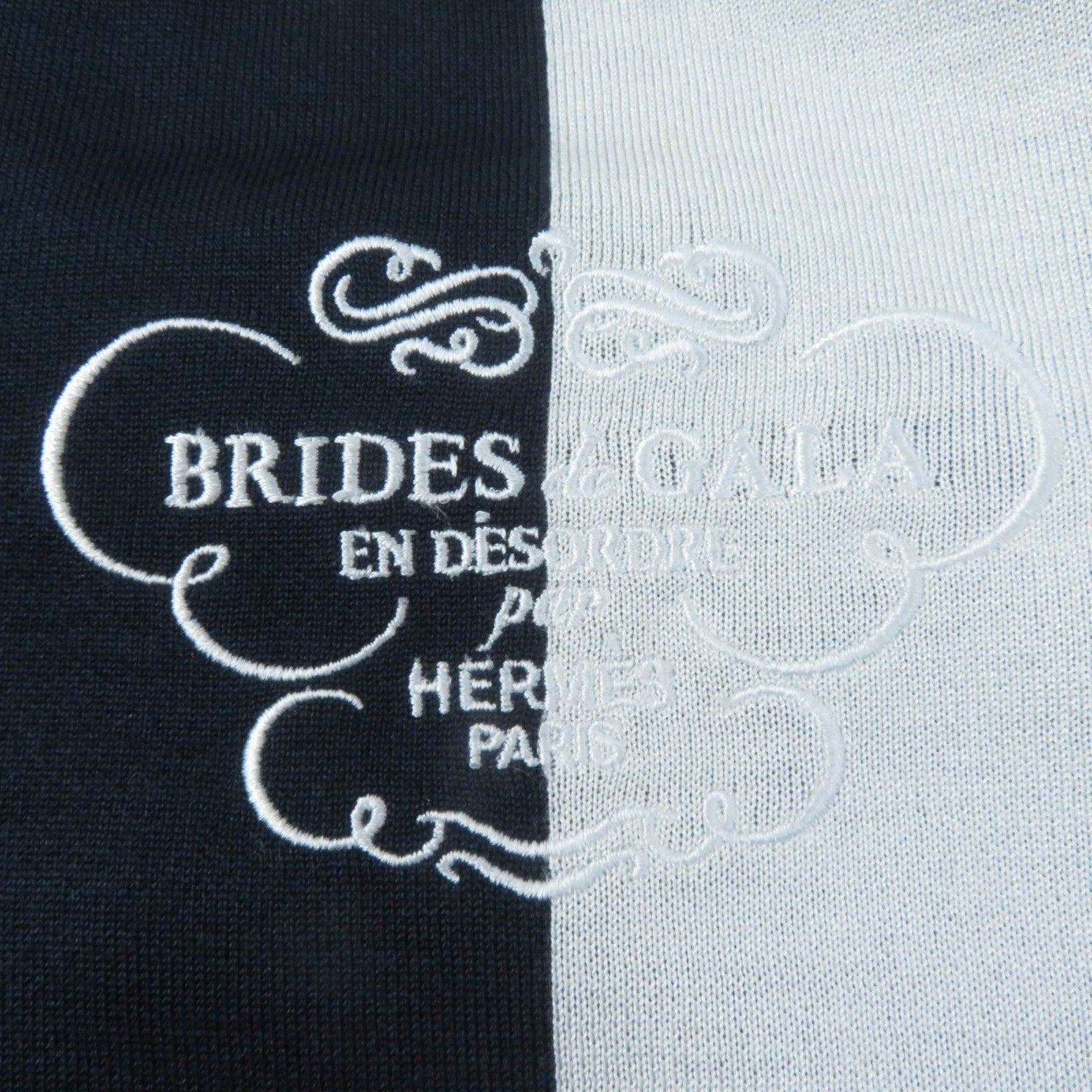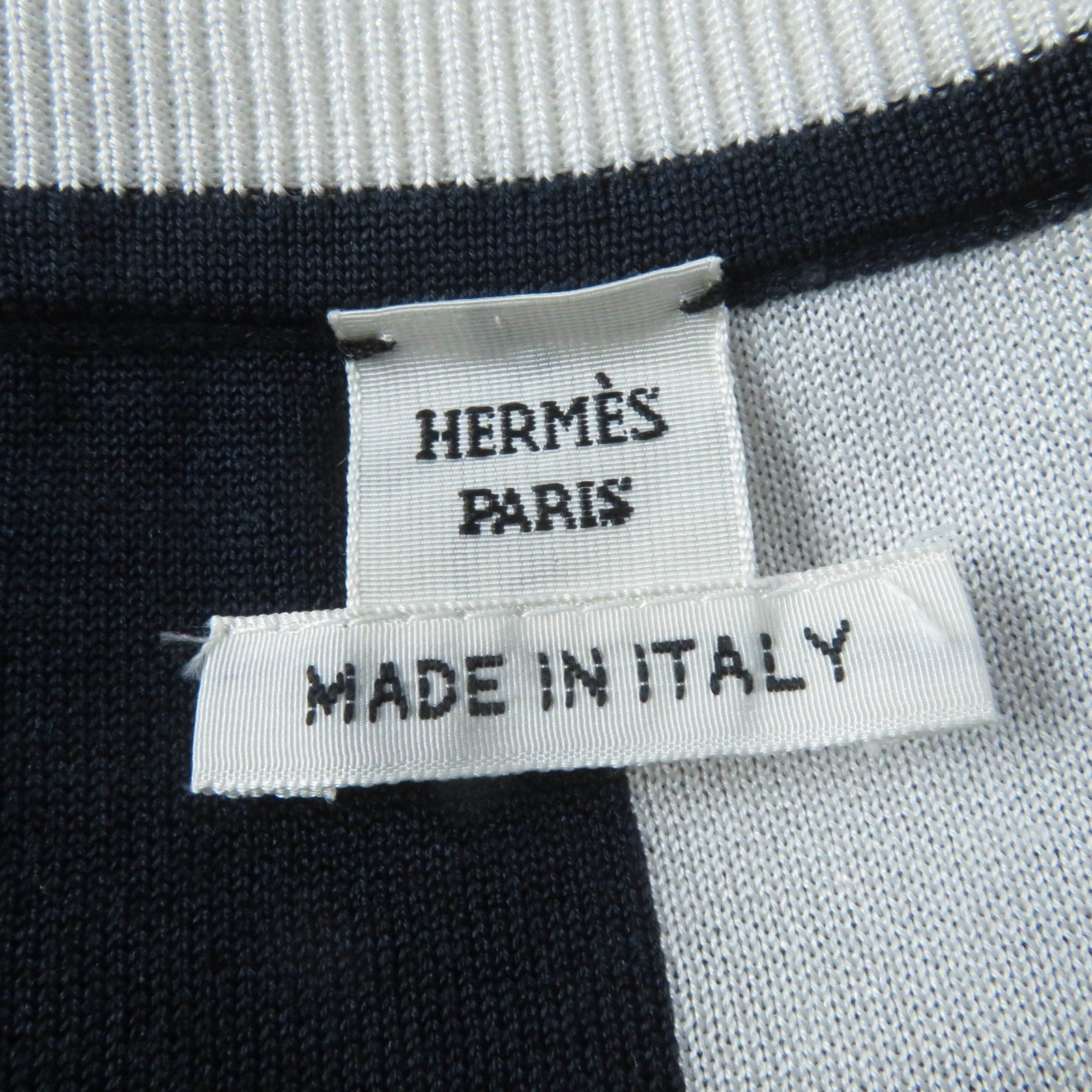 Hermes Short Sleeve Knit 4E2654D6 Silk Navy White Knit Jacquard Chaos Women 42
