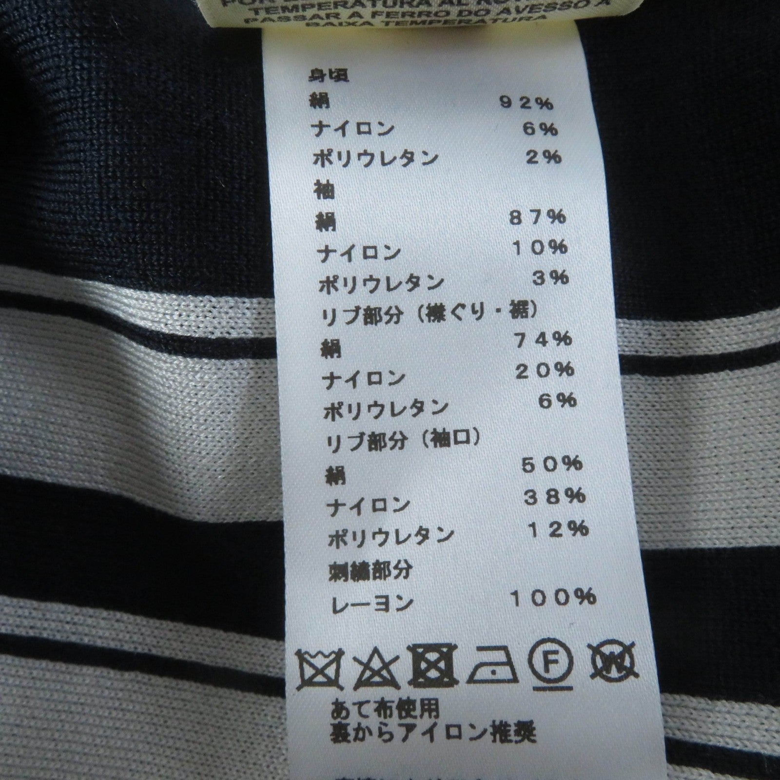Size: cm (approx.): Shoulder width: 40 Dress length: 59 Width: 48 Sleeve Length: 20 inch (approx.): Shoulder width: 15.7 Dress length: 23.2 Width: 18.9 Sleeve Length: 7.9 Detailed remarks: Disorder Main (body): 92% silk, 6% nylon, 2% polyurethane Main (sleeve): 87% silk, 10% nylon, 3% polyurethane Ribbed part (neckline, hem): 74% silk, 20% nylon, 6% polyurethane Ribbed part (cuffs): 50% silk, 38% nylon, 12% polyurethane Embroidered part: 100% rayon
