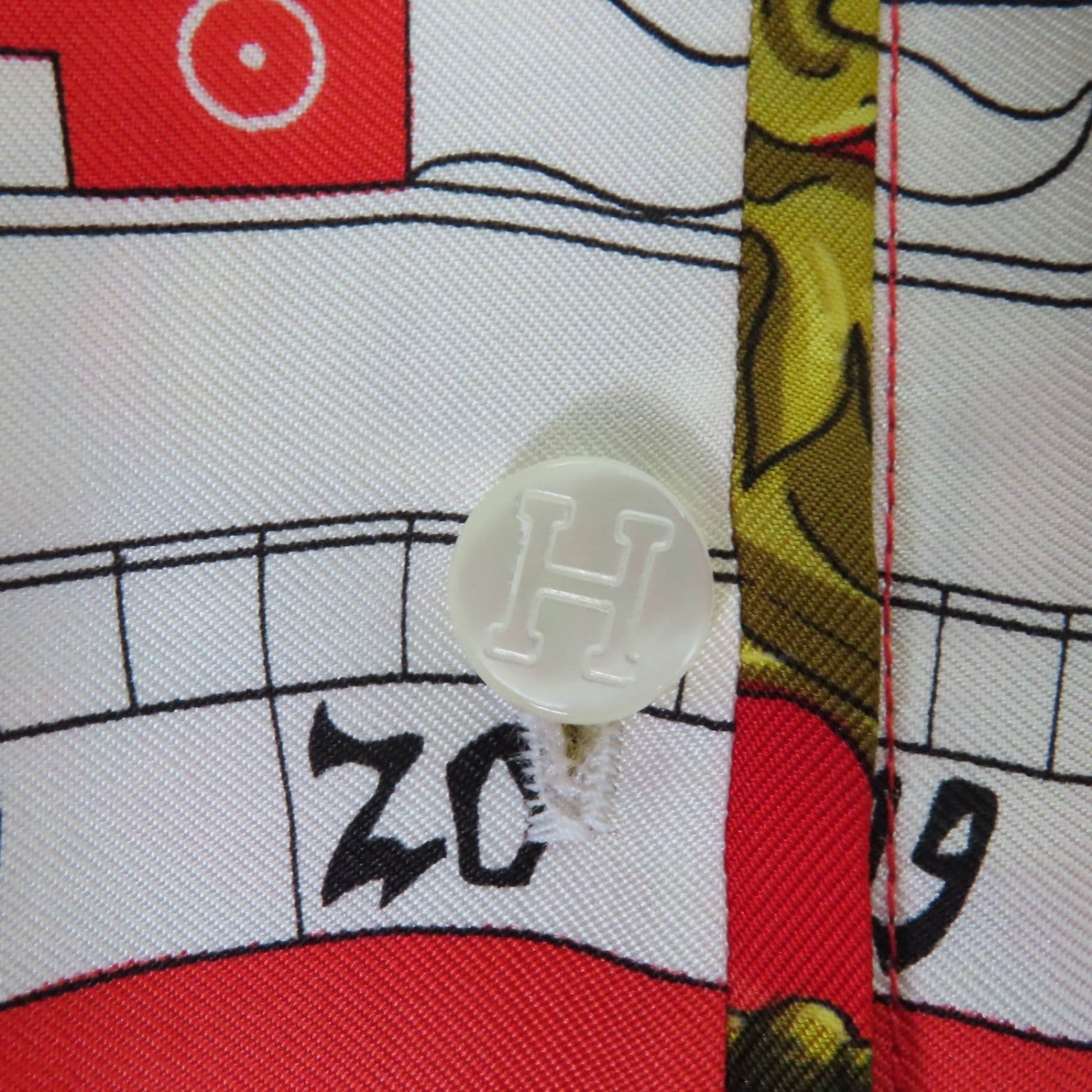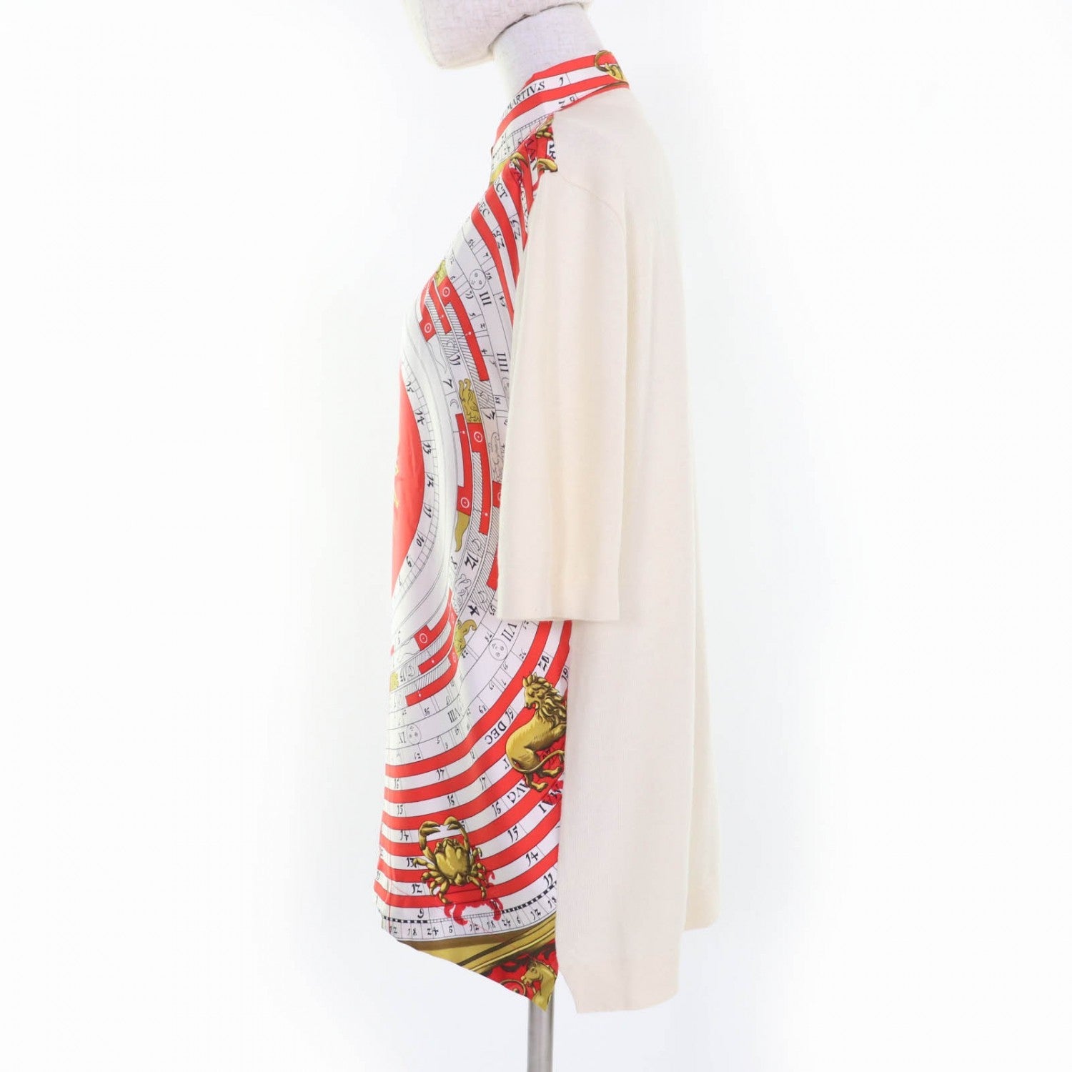 Hermes Short Sleeve Polo Shirt Silk Ivory Red Type Astrology M