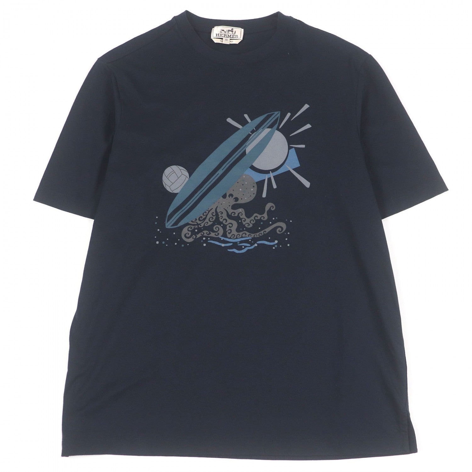 Hermes Short Sleeve T-Shirt Cotton Navy Poulp Watch Xs
