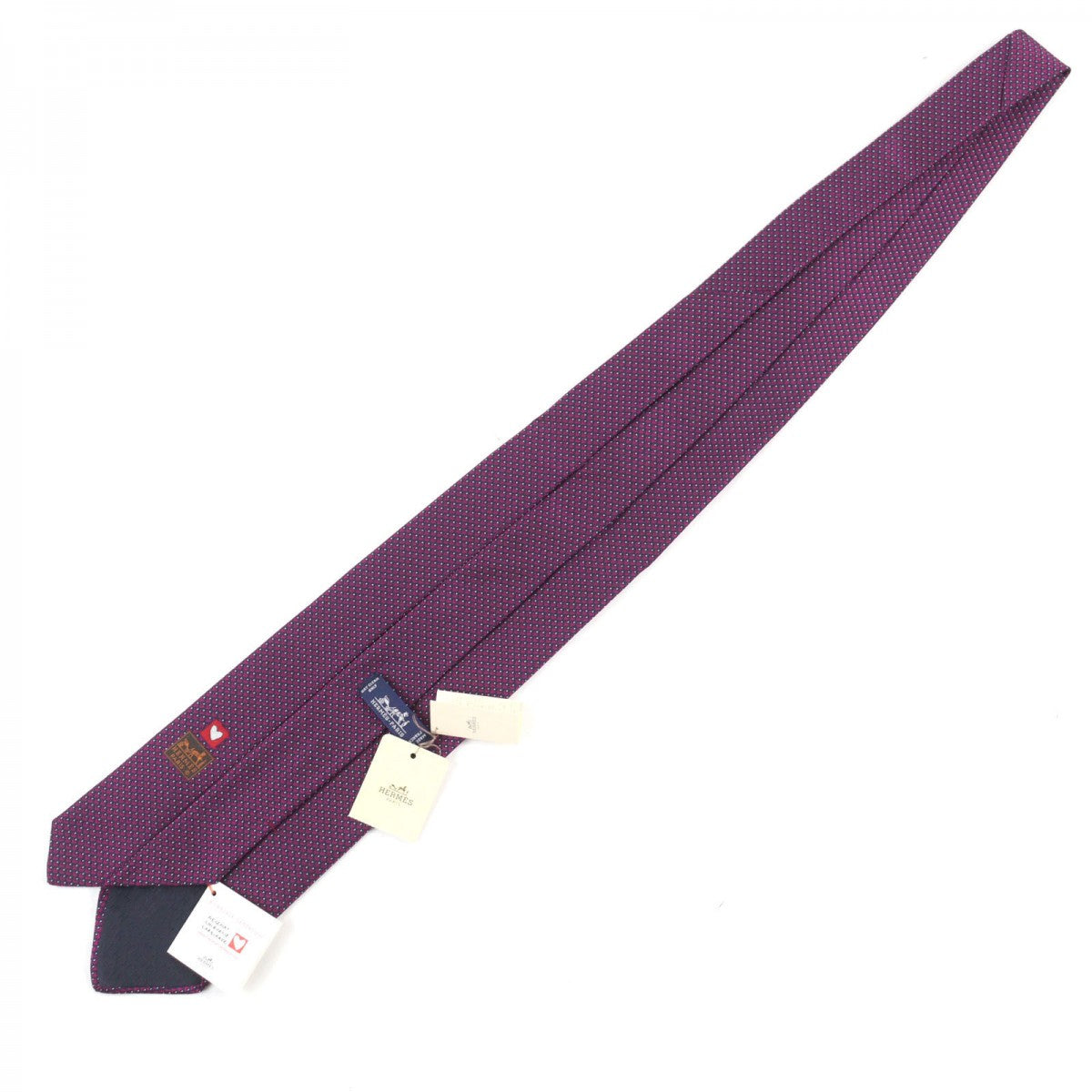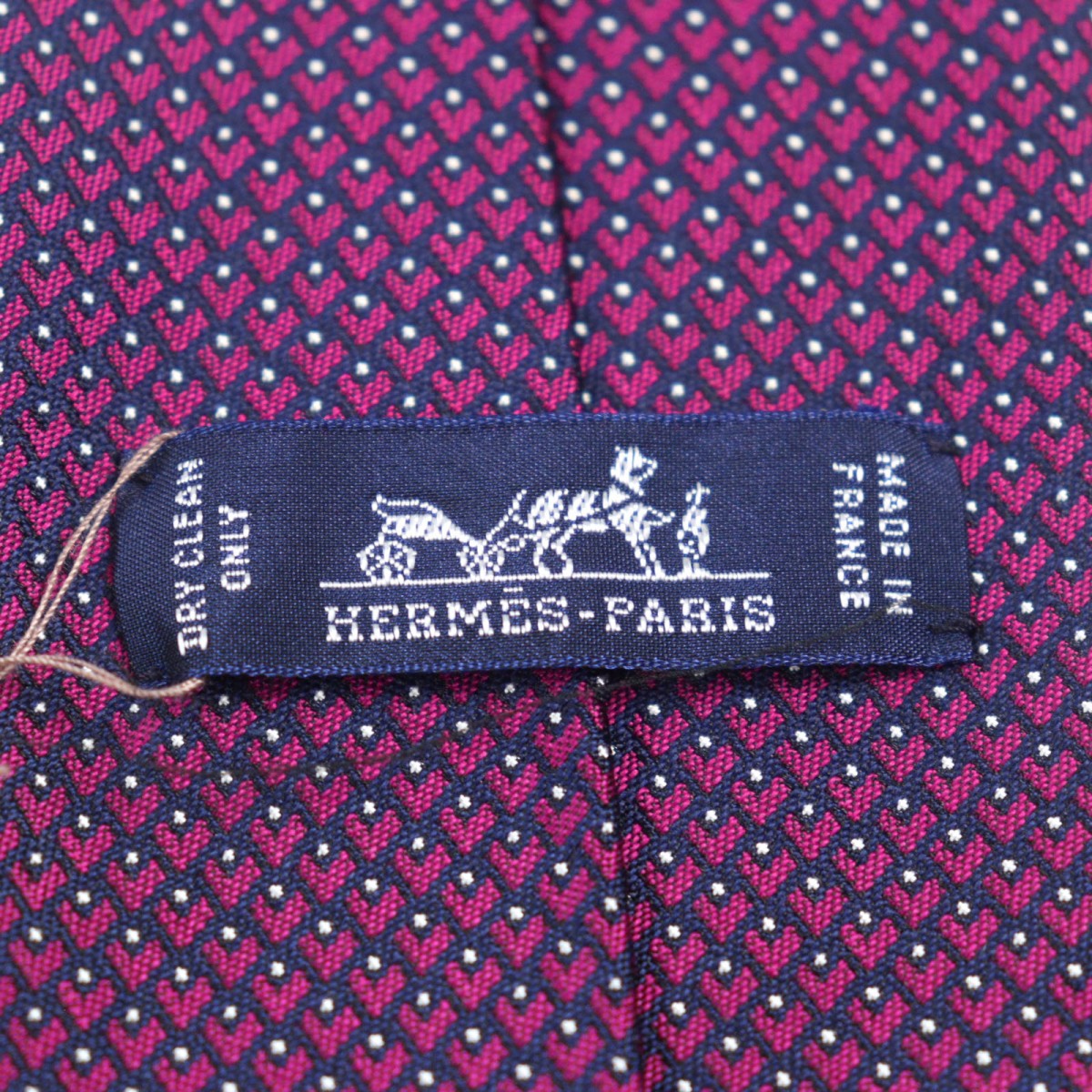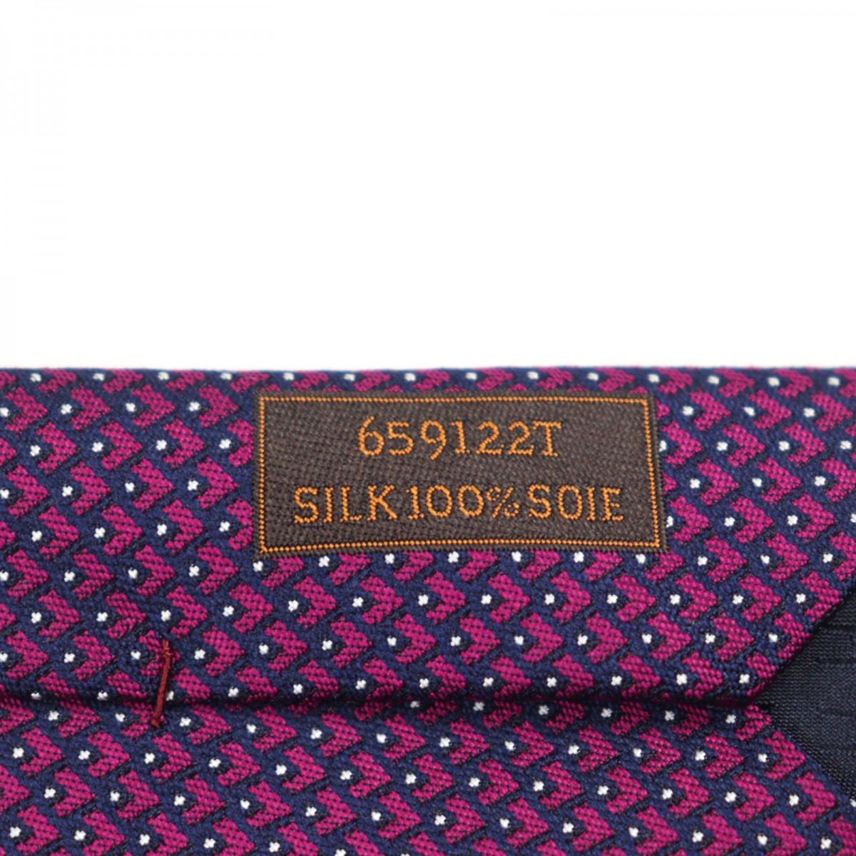 Hermes Tie 659122T Silk Purple Marine Framboise Blanc Cravate