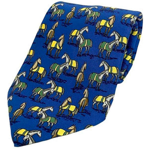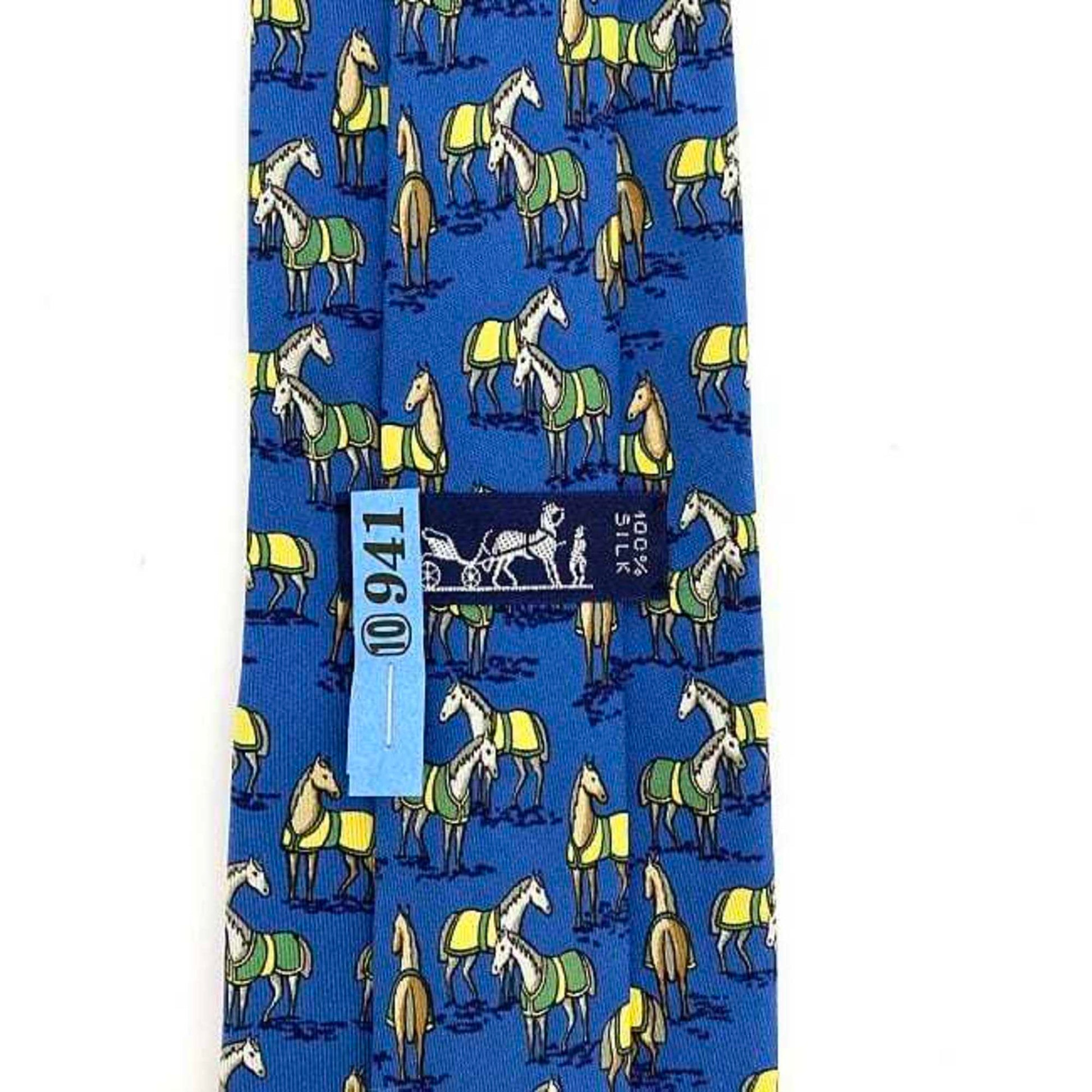 Hermes Tie Blue Ec-20345 100% Silk Hermes Horse