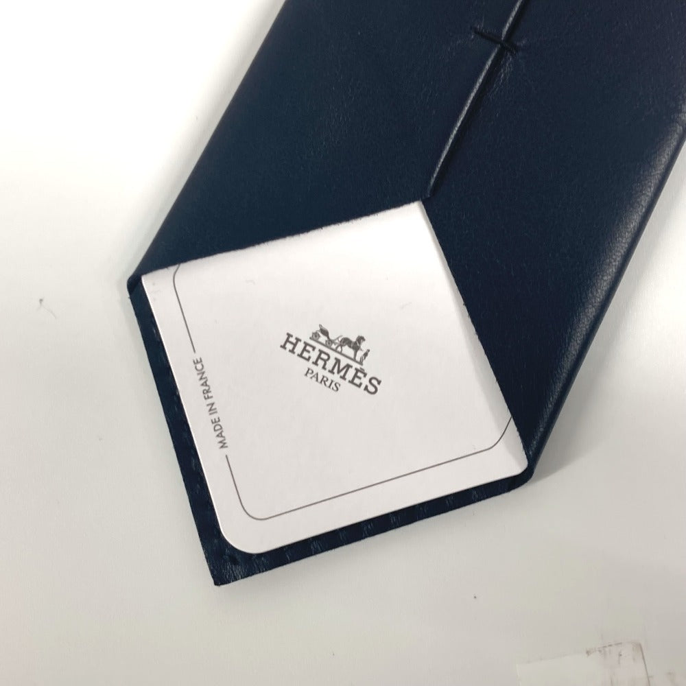 Hermes Tie Cotton, Leather Navy Denim Maillon Tie With Leather Details Mens