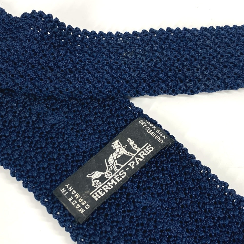 Hermes Tie Silk Navy H Logo Knit Tie Knit Tie