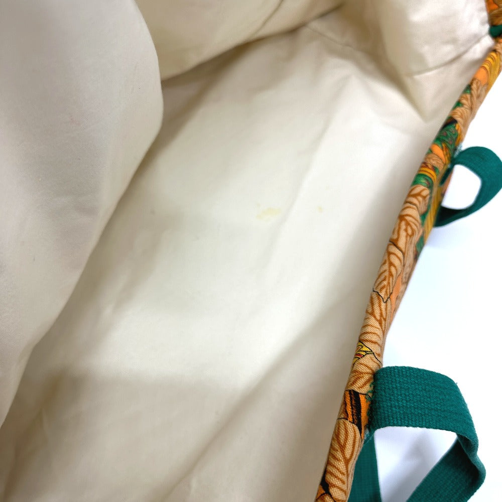Hermes Tote Bag Canvas Orange Parakeet Bird Pattern Women