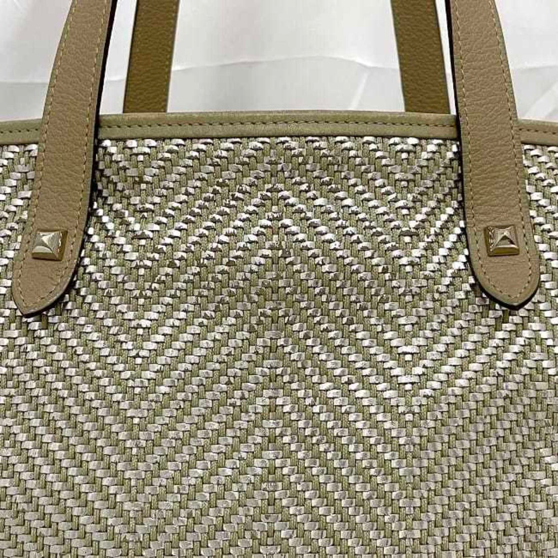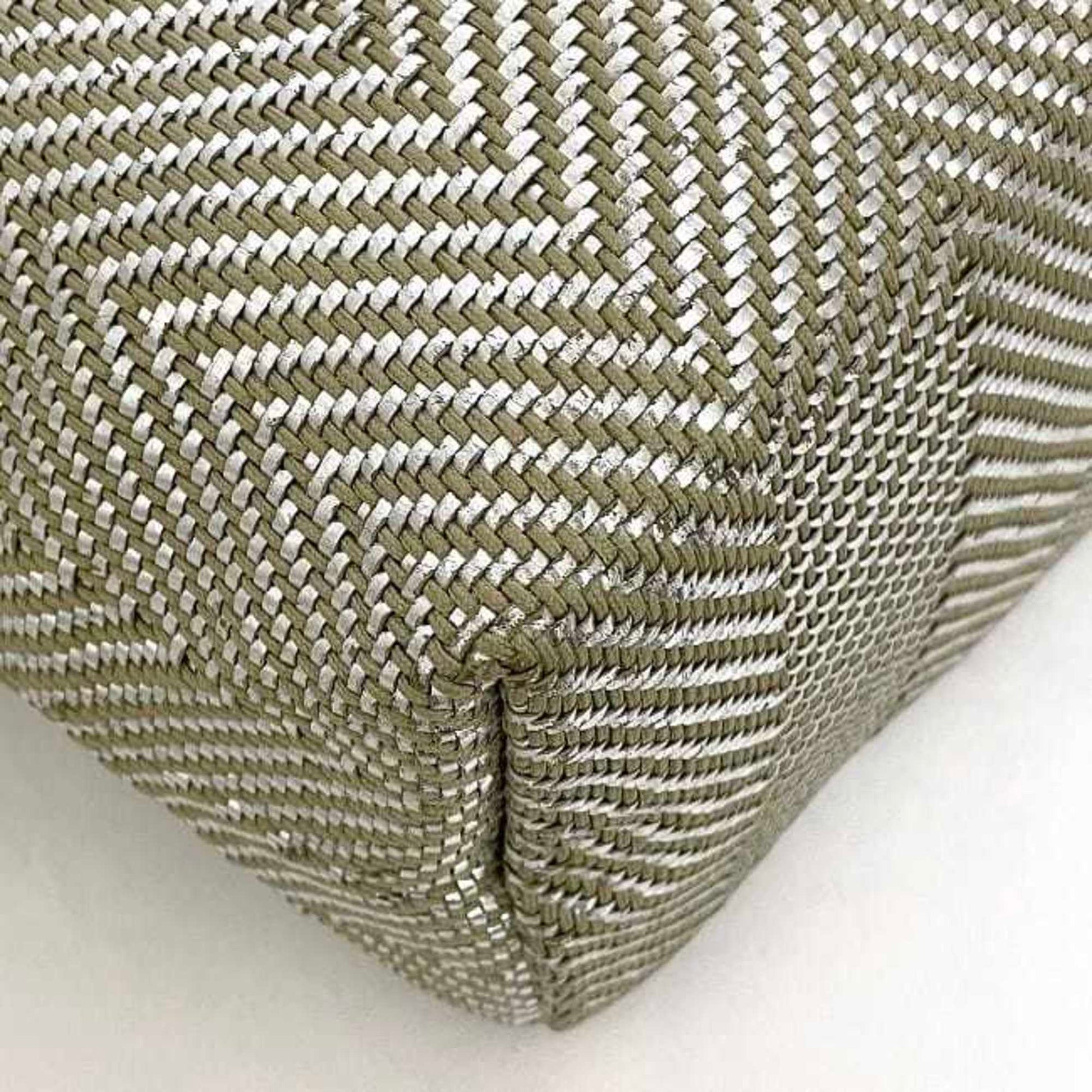 Hermes Tote Bag Chennai Mm Ec-23011 Beige Silver Etoupe Leather Polyester Hermes