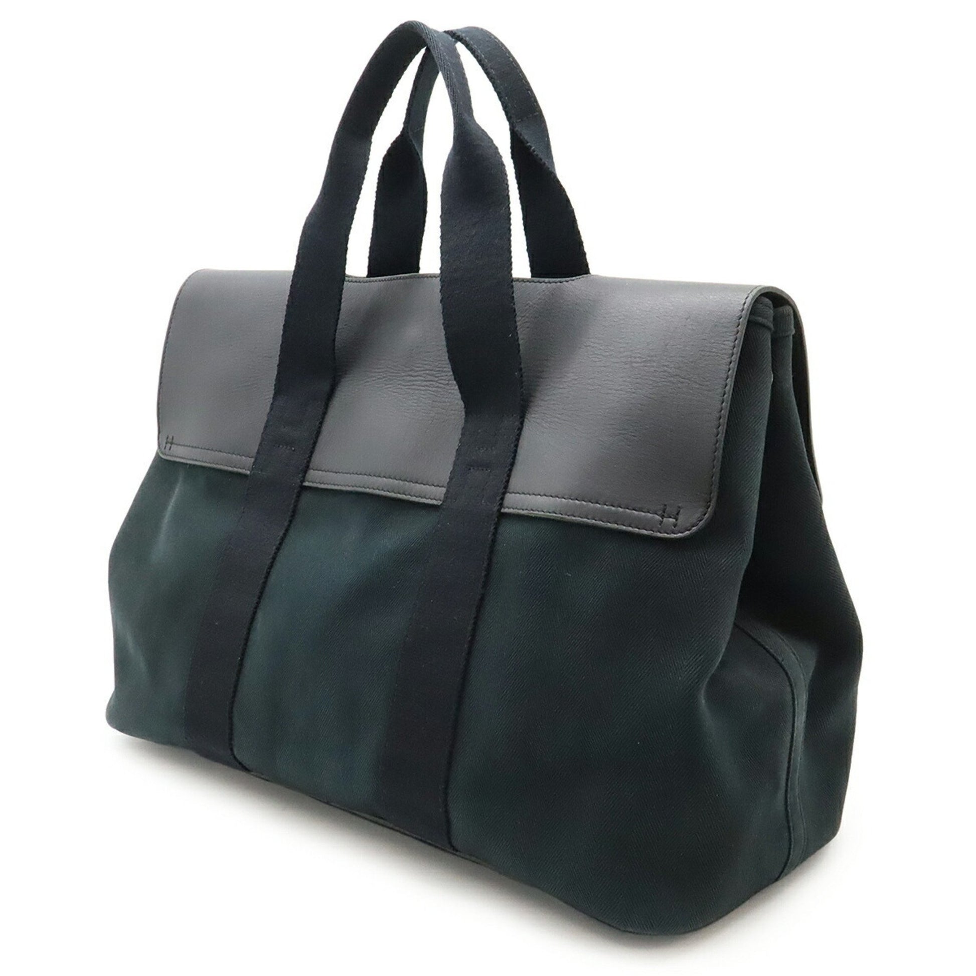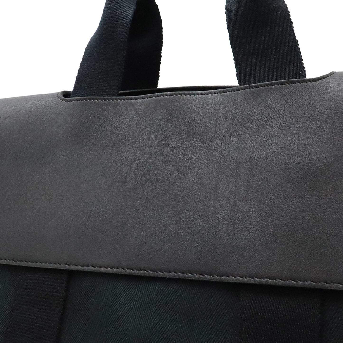 Hermes Valparaiso Mm Handbag Tote Bag In Toile Chevron Leather Black.