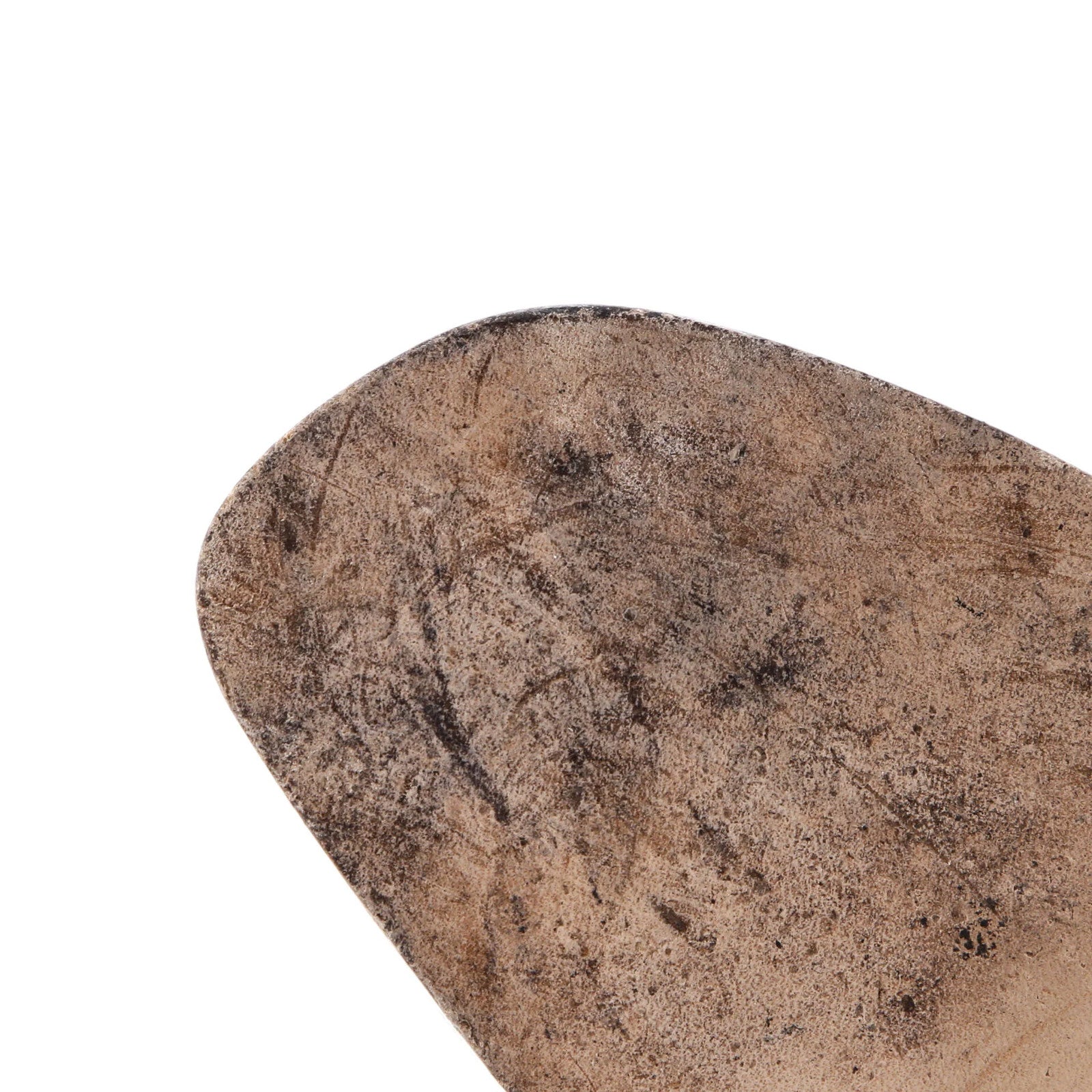 Condition: Very good. Minor creasing throughout, marks and minor scuffs in interior, peeling, darkening, scuffs, and heavy water stains on outer soles.