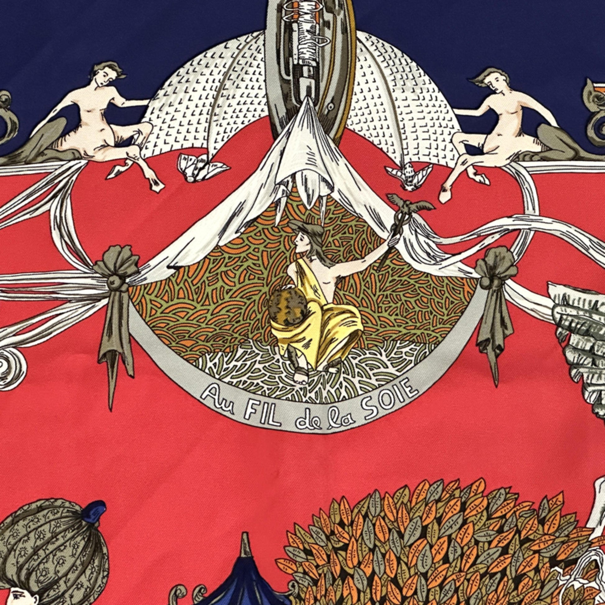 Herms Hermes Scarf/Muffler Carr 90 "Au Fil De La Soie" (As The Silk Thread Moves)