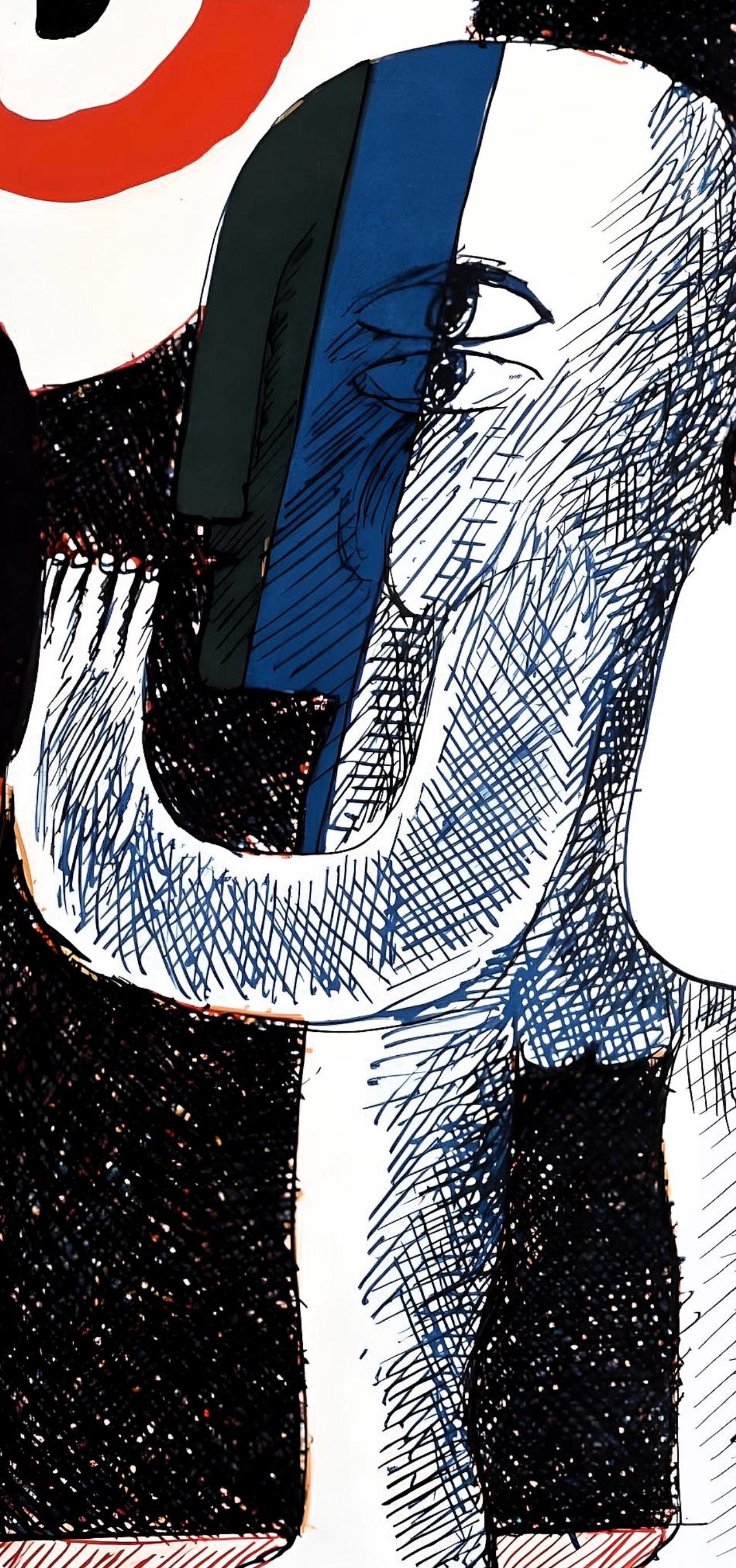 Lithograph on vlin paper. Paper size: 11.2 x 19.1 inches. Excellent condition, with centerfold, as issued. Inscription: Unsigned and unnumbered, as issued. Notes: From the folio, Suites n8, Rencontres, 1964. Published by Galerie Krugier et Cie, Genve; printed by Dumaret et Golay, Genve, November, 1964. Excerpted from the folio (translated from French), The original lithographs of "Suites N 8" were composed in the following order by: Antes, Bertholo, Hockney, Luginbhl, Rancillac, Telemaque, Uhry (cover) on the occasion of the exhibition "Rencontres" at the Galerie Krugier et Cie, in Genve. "Suites No 8" was printed on the Dumaret et Golay presses in Genve, in November 1964, in number of MD examples, including CC luxury examples, numbered from I to CC, composed of VII signed original lithographs. They were printed on the presses of Cass in Paris, Matthieu in Zurich and Golay in Genve.