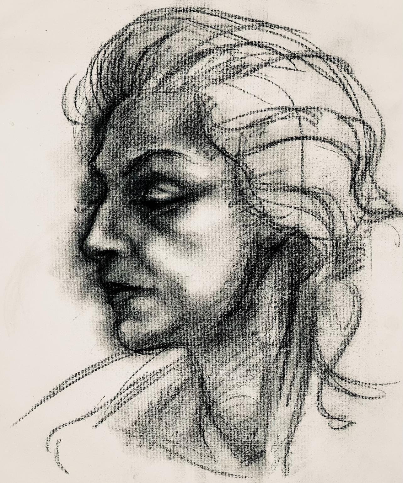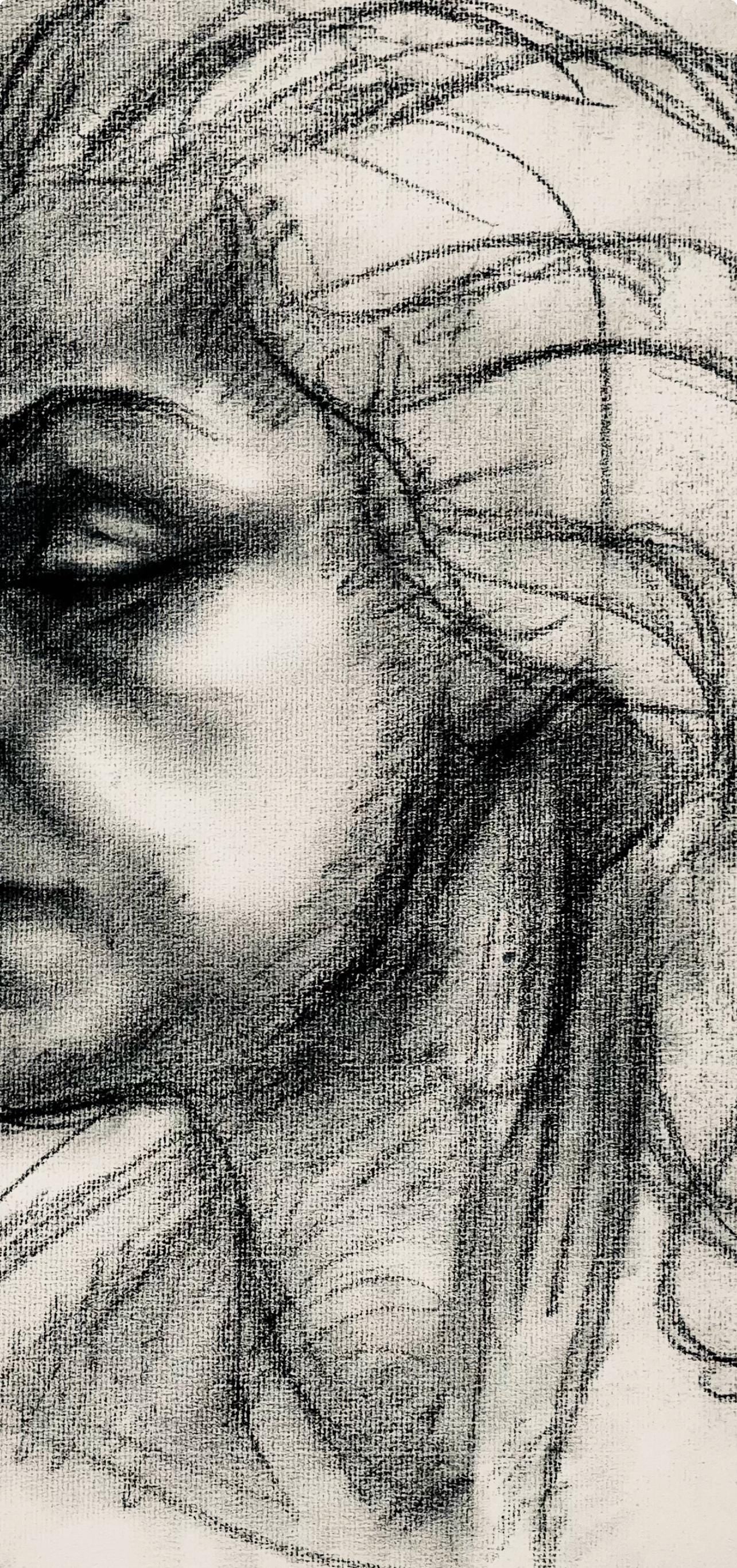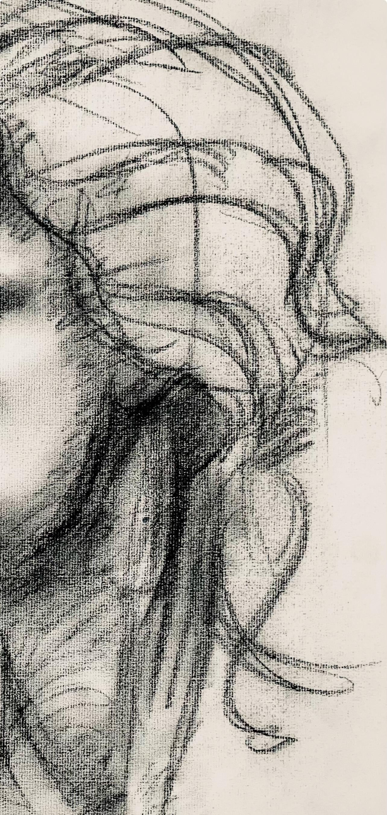 Charcoal on vlin paper, circa 1963. Paper Size: 23 x 18 inches. Good condition, consistent with age. Inscription: Unsigned, Estate stamped, verso. Provenance: Estate of Ian Hornak, East Hampton. Notes: Created during Hornaks undergraduate studies at Wayne State University in Detroit, Michigan.