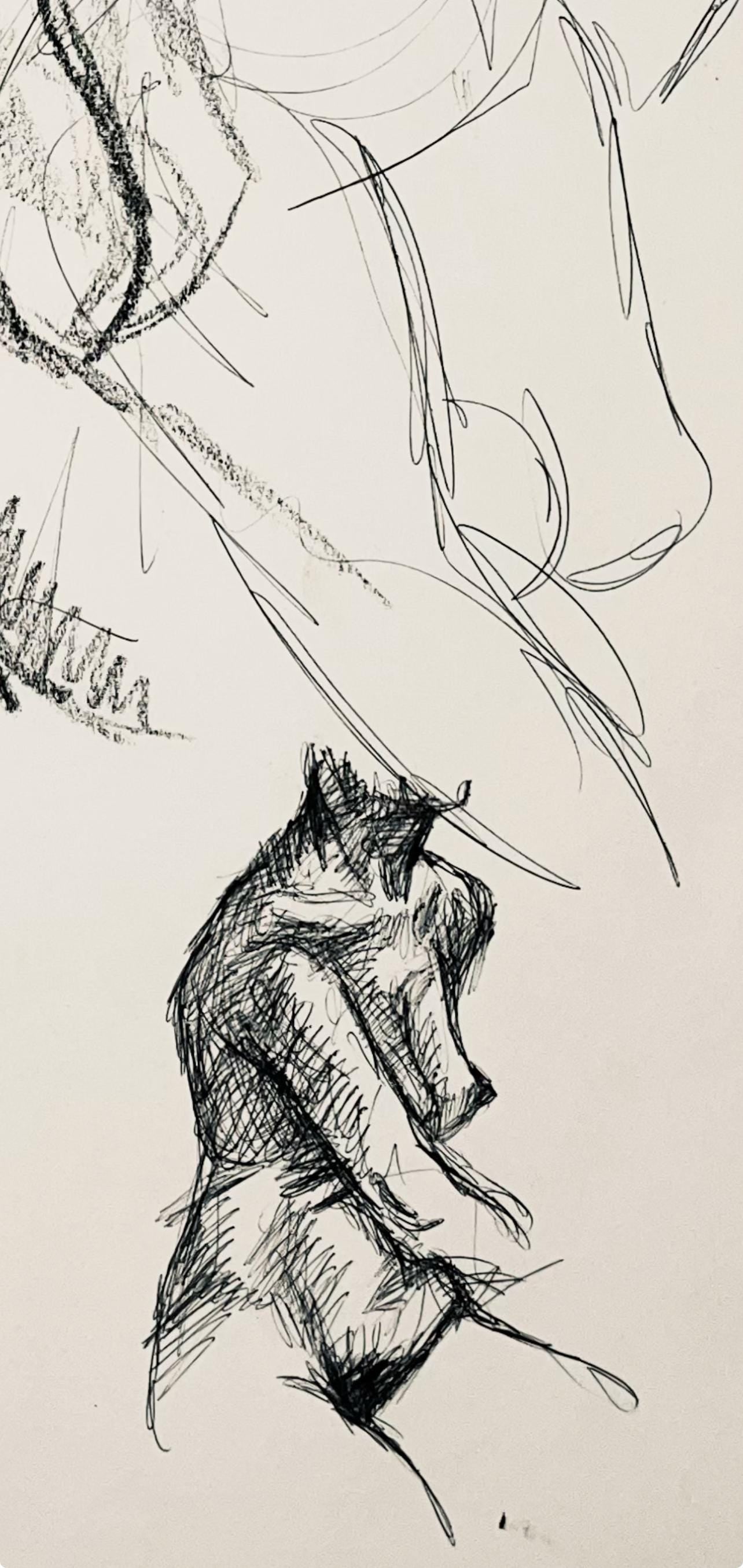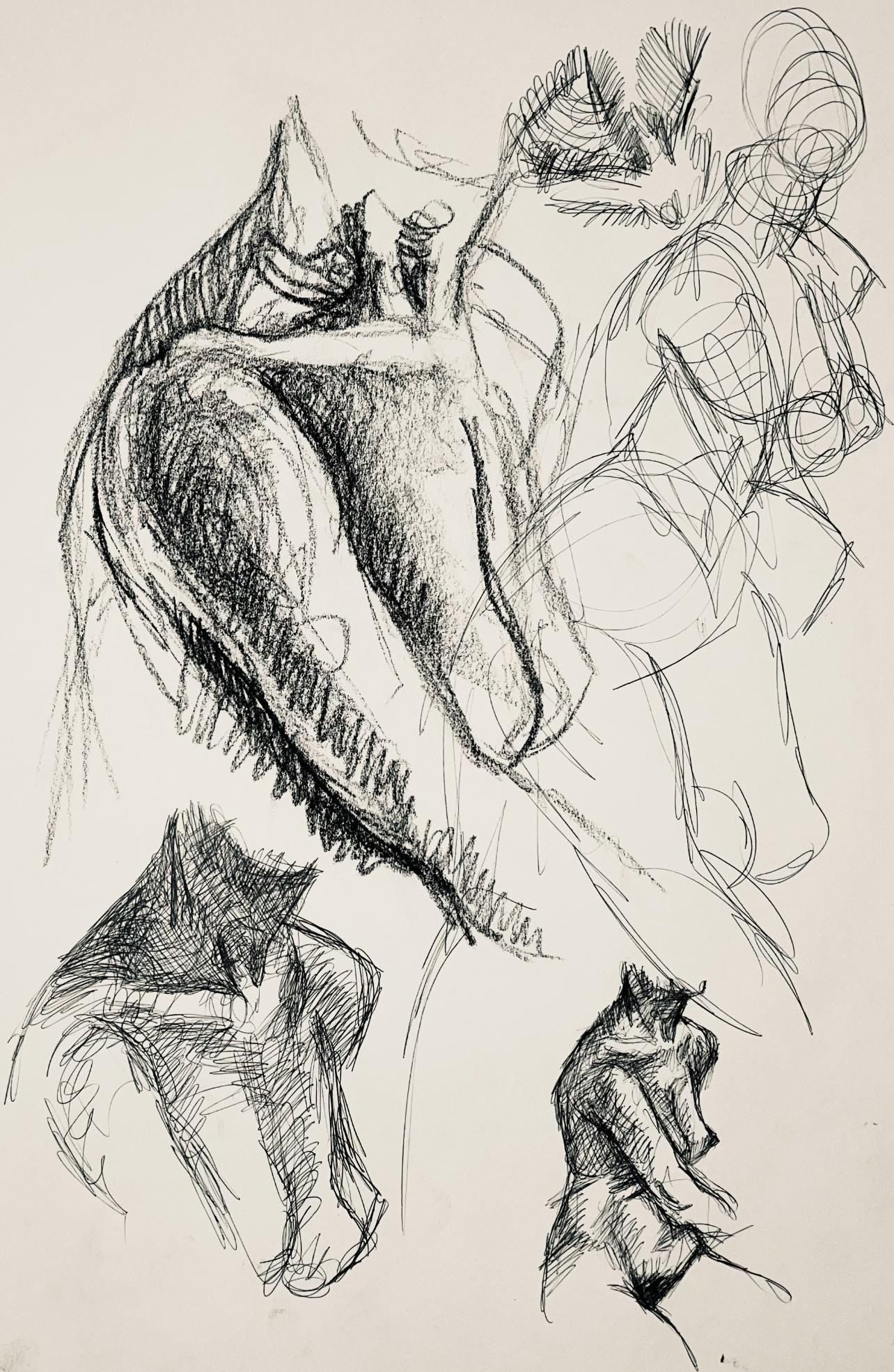 Charcoal on vlin paper, circa 1963. Paper Size: 23 x 18 inches. Good condition, consistent with age. Inscription: Unsigned, Estate stamped, verso. Provenance: Estate of Ian Hornak, East Hampton. Notes: Created during Hornaks undergraduate studies at Wayne State University in Detroit, Michigan.