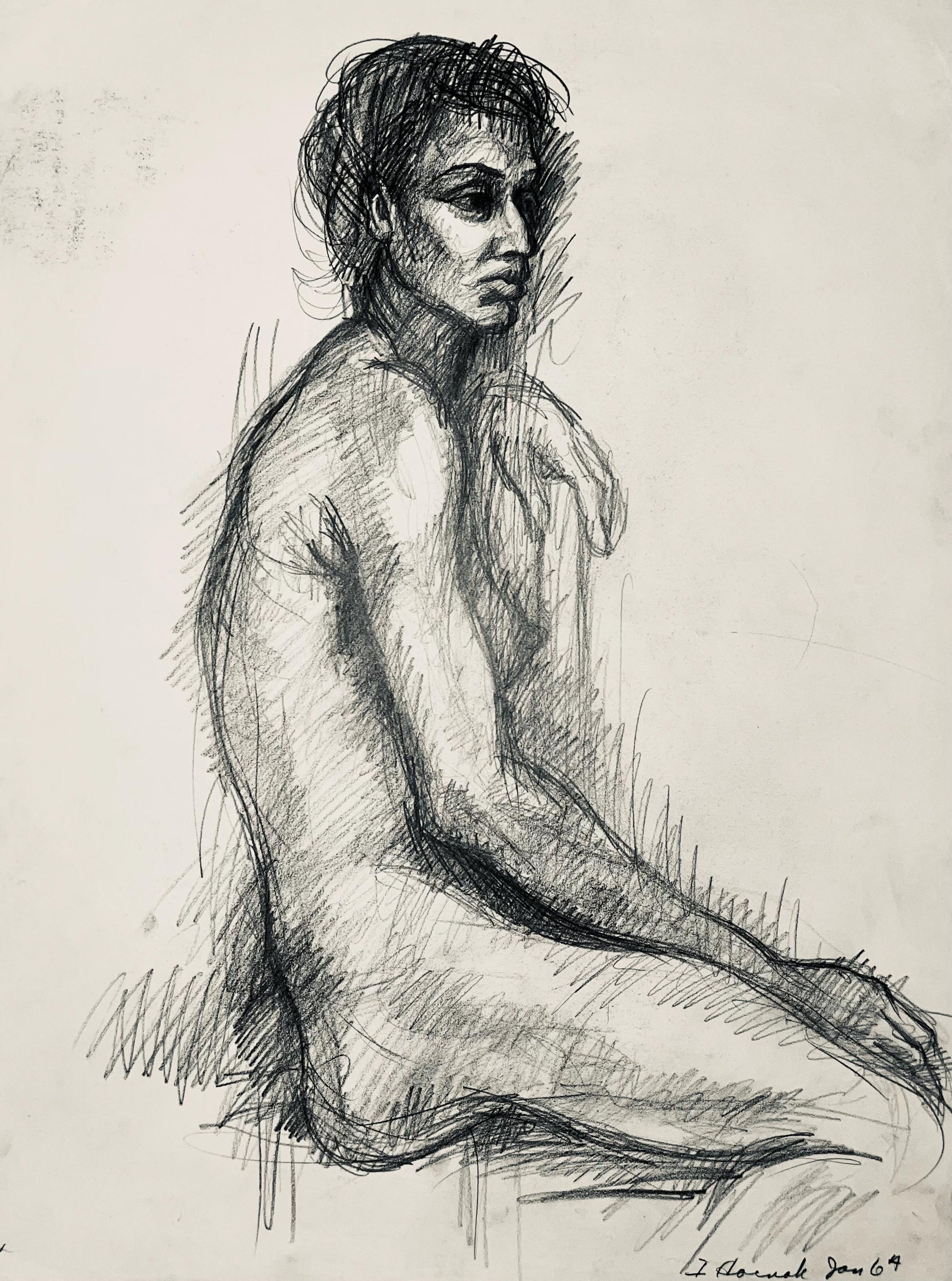Charcoal on vlin paper, circa 1963. Paper Size: 23 x 18 inches. Good condition, consistent with age. Inscription: Unsigned, Estate stamped, verso. Provenance: Estate of Ian Hornak, East Hampton. Notes: Created during Hornaks undergraduate studies at Wayne State University in Detroit, Michigan.