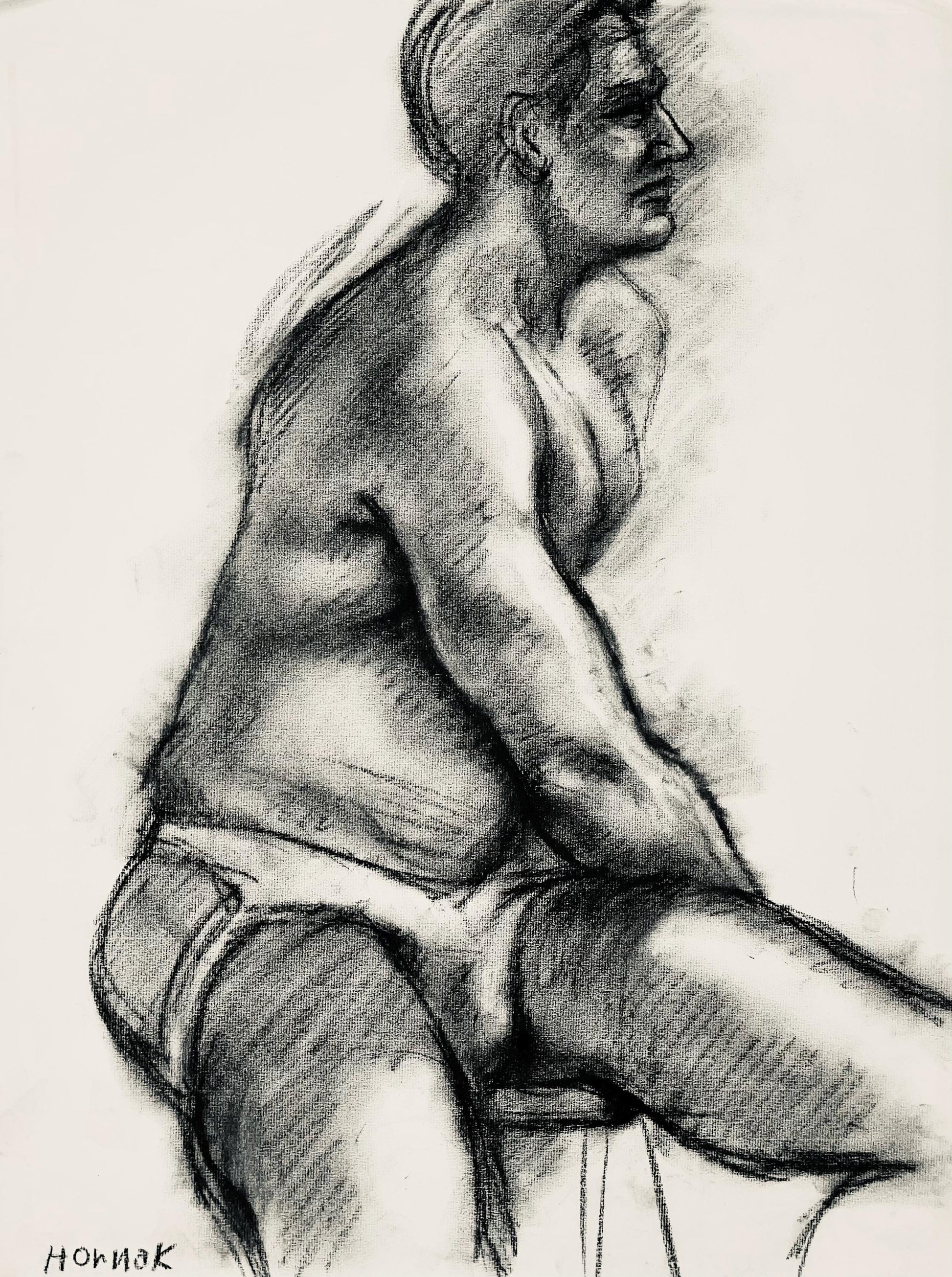 Charcoal on vlin Strathmore paper, circa 1963. Paper Size: 23 x 18 inches. Good condition, consistent with age. Inscription: Unsigned, Estate stamped, verso. Provenance: Estate of Ian Hornak, East Hampton. Notes: Created during Hornaks undergraduate studies at Wayne State University in Detroit, Michigan.
