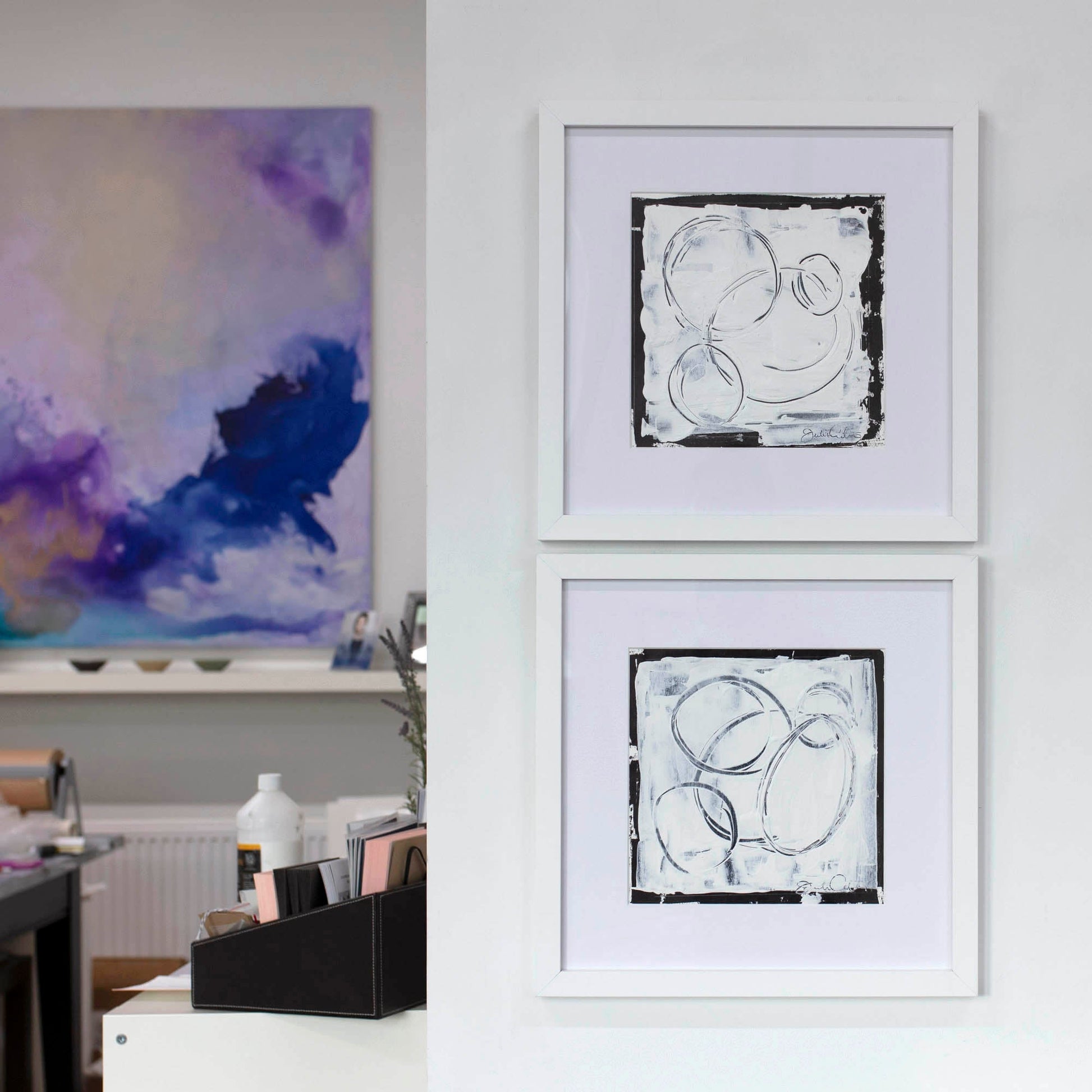 This series uses texture,layering and gestural mark making to create interest and movement. Possible hints to figurative form combined with a limited color palette intensifies the suggestion of something more while allusive on delivering just that. The intrigue of where you may end up if following the circular and spiraling paths, builds when layering more than one work from......