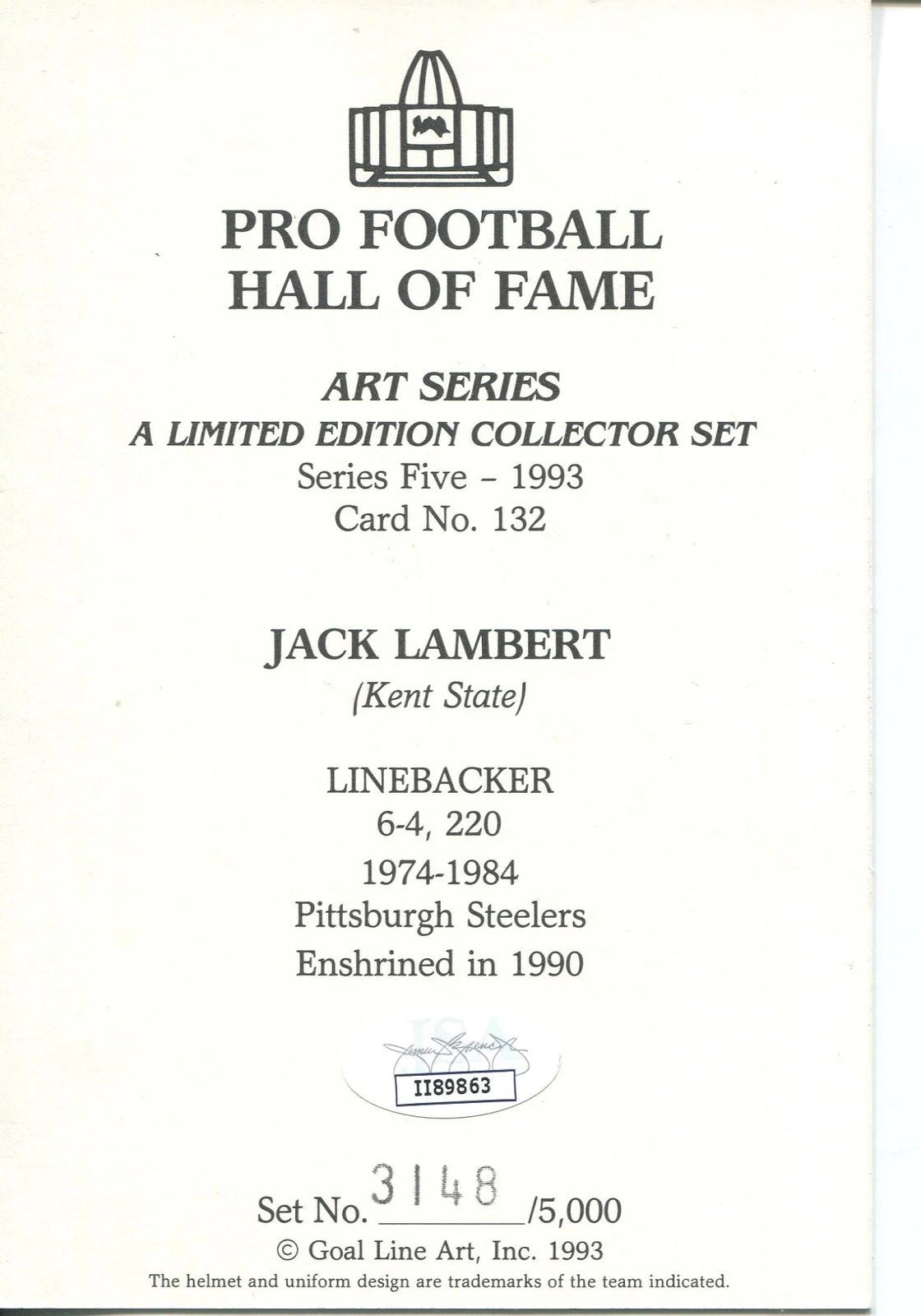 Jack Lambert Autographed Goal Line Art Card (Jsa)