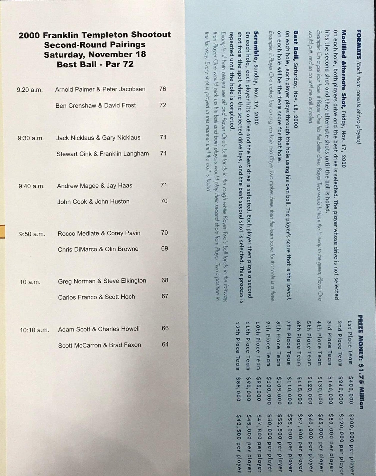 Jack Nicklaus Autographed 2000 Franklin Templeton Shootout Pamphlet