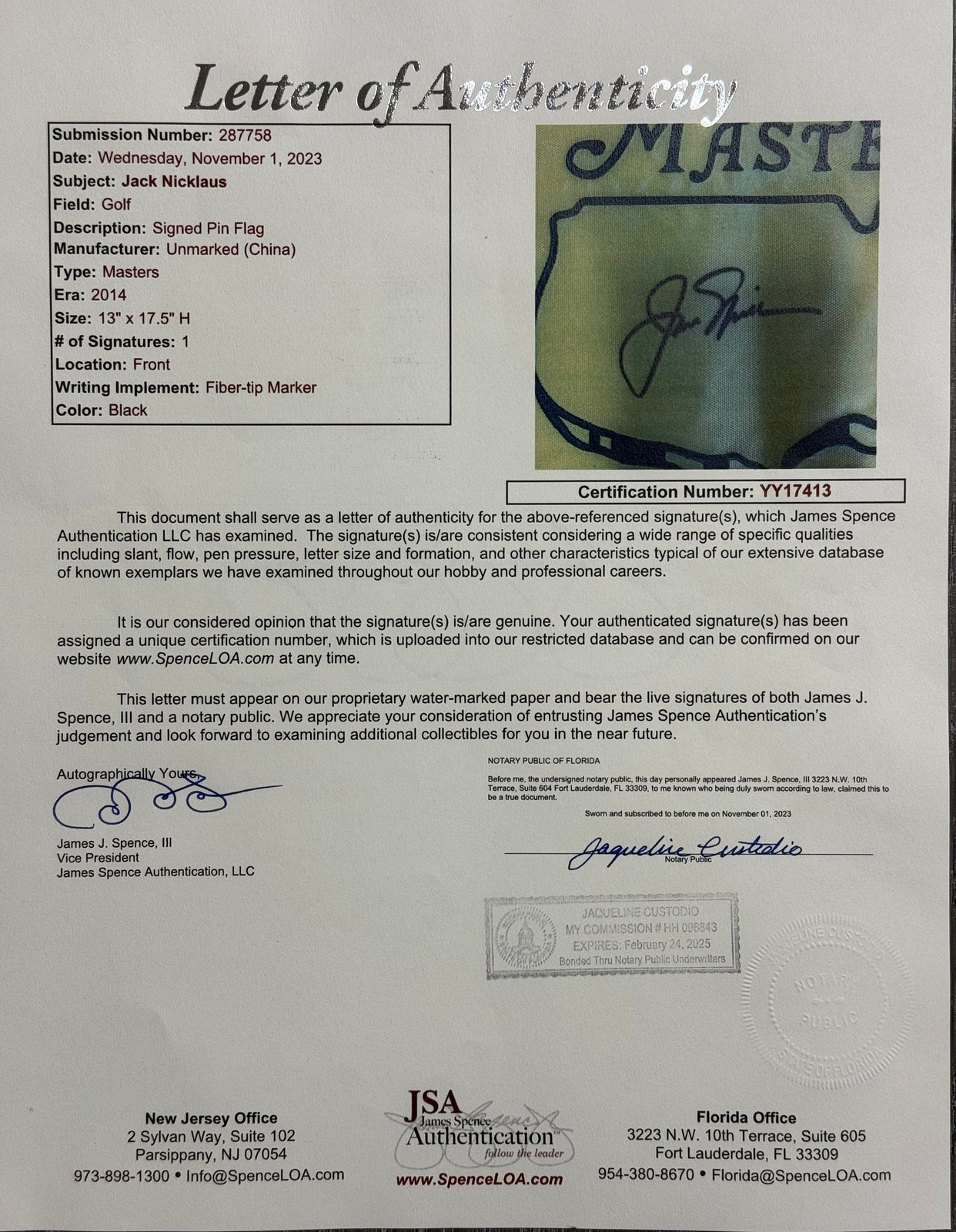 Jack Nicklaus Autographed Framed 2014 Masters Flag (Jsa)