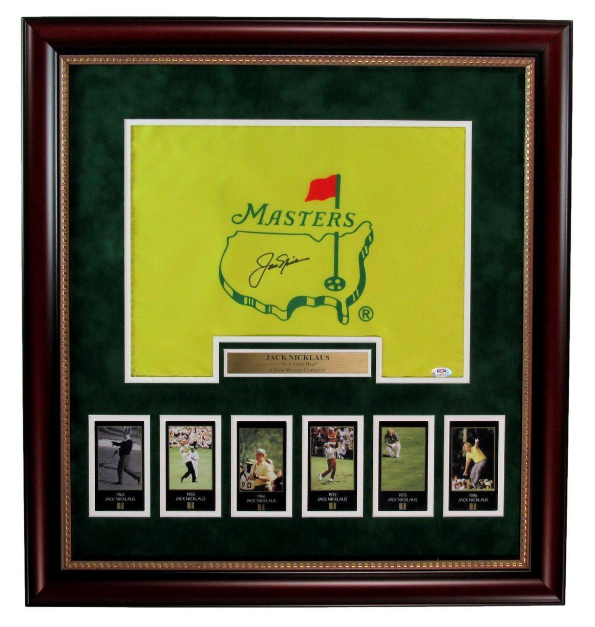 Jack Nicklaus Autographed Masters Flag With Card Collage Framed Psa/Dna 180111