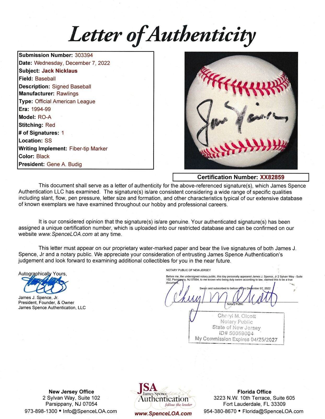 Jack Nicklaus Autographed Rawlings Oal Baseball Pga Champ Jsa