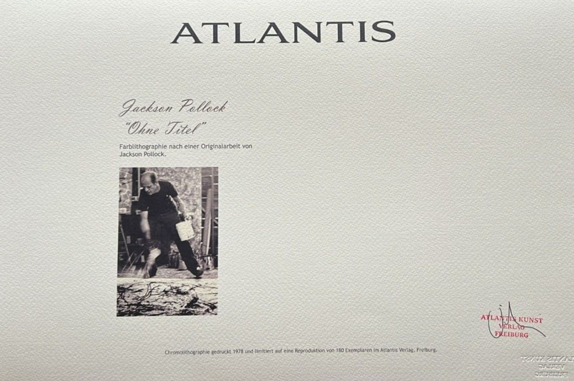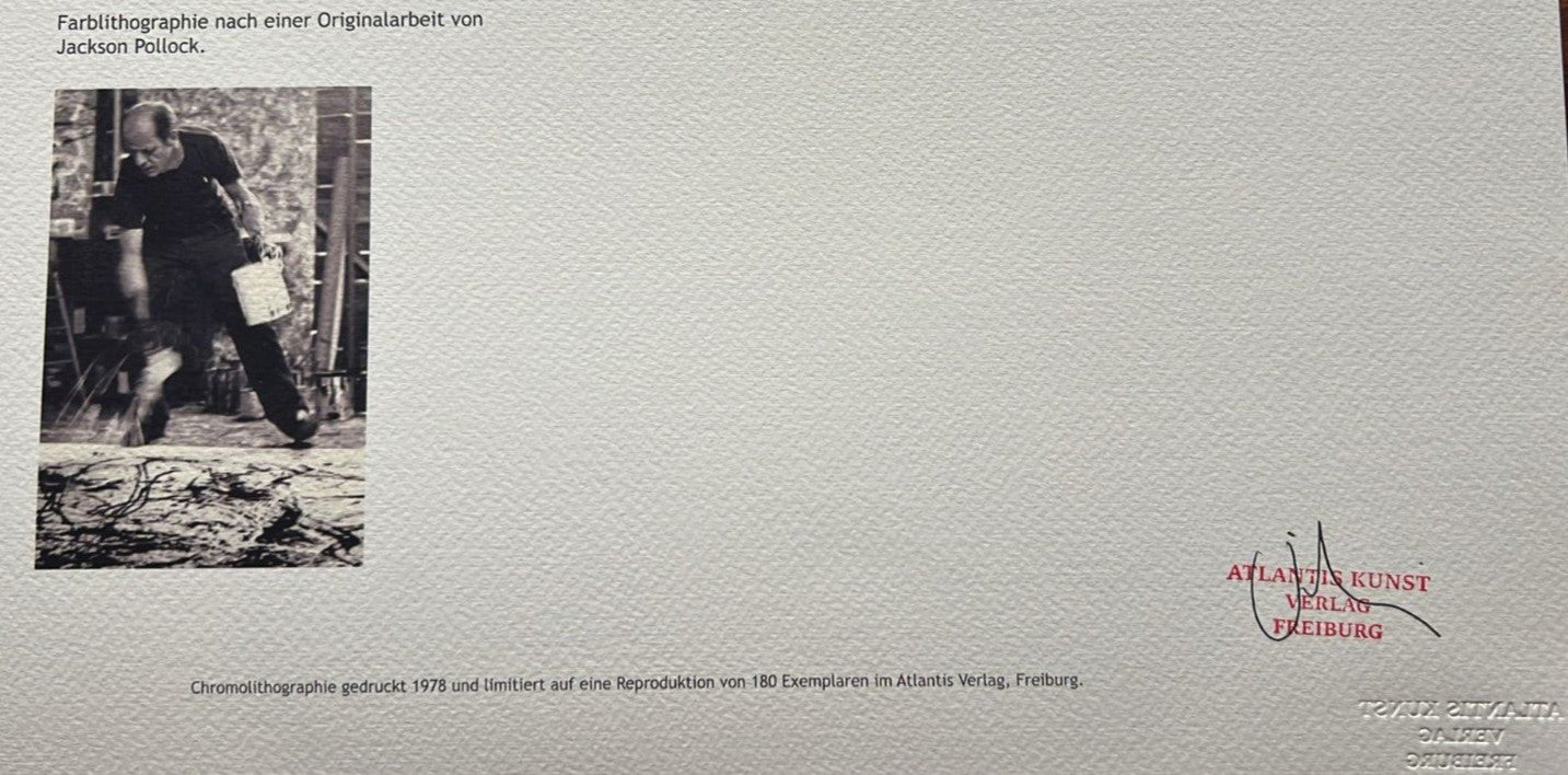 JACKSON Pollock Action Painting COA Signed Numbered A Hand Pencil (180 Exe ) JACKSON Pollock " without title " Chromolithograph printed in 1978 in 180 copies by Atlantis Verlag, Freiburg 30 x 45 cm Signature JACKSON Pollock on the slab Embossed stamp and authentication by the publishing house Atlantis Kunst Verlag Freiburg JACKSON Pollock " without title" Chromolithograph printed in 1978 in 180 copies by Atlantis Verlag, Freiburg 30 x 45 cm Signature JACKSON Pollock on the slab Embossed stamp and authentication by the publishing house Atlantis Kunst Verlag Freiburg