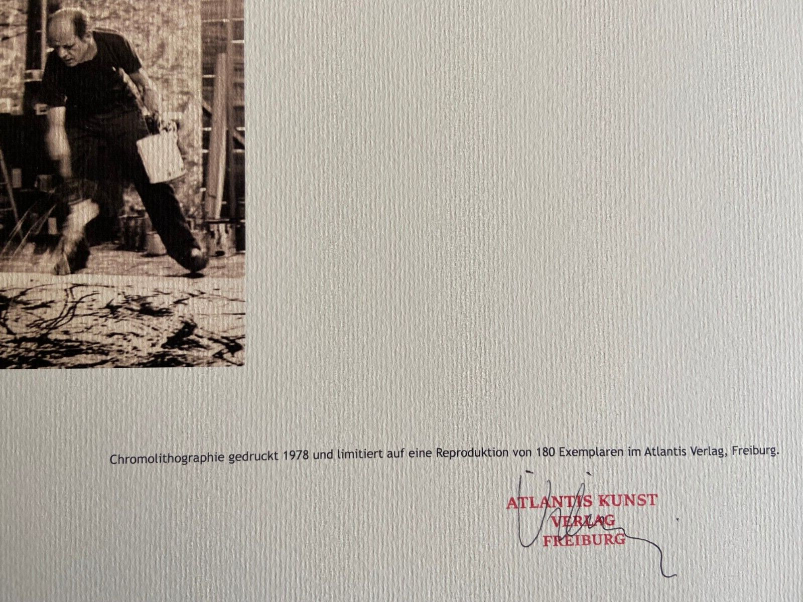 JACKSON Pollock " without title " Chromolithograph printed in 1978 in 180 copies by Atlantis Verlag, Freiburg 30 x 41 cm Signature JACKSON Pollock on the plate Embossed stamp and authentication by the publishing house Atlantis Kunst Verlag Freiburg JACKSON Pollock " without title" Chromolithograph printed in 1978 in 180 copies by Atlantis Verlag, Freiburg 30 x 41 cm Signature JACKSON Pollock on the plate Embossed stamp and authentication by the publishing house Atlantis Kunst Verlag Freiburg