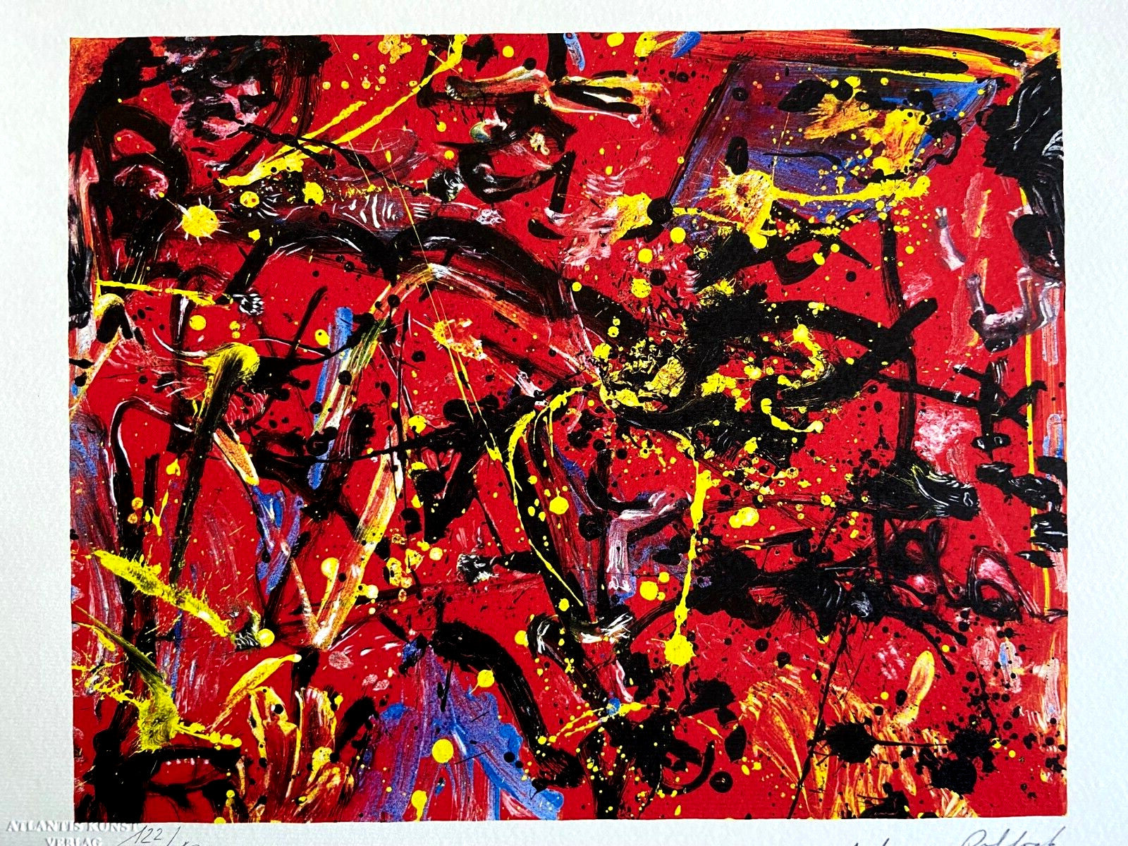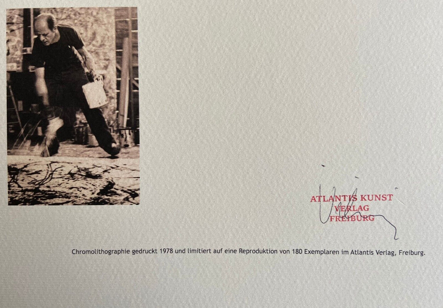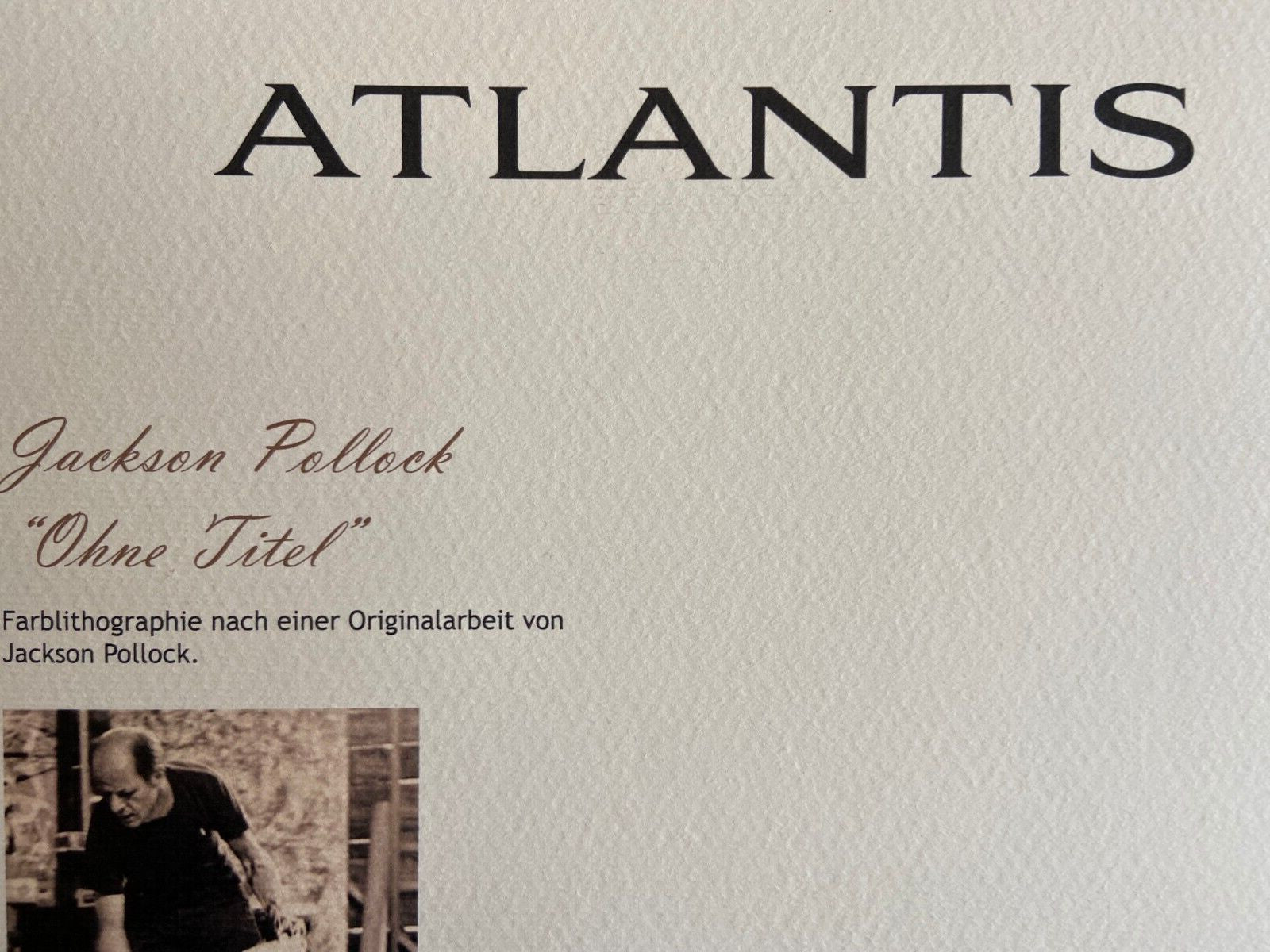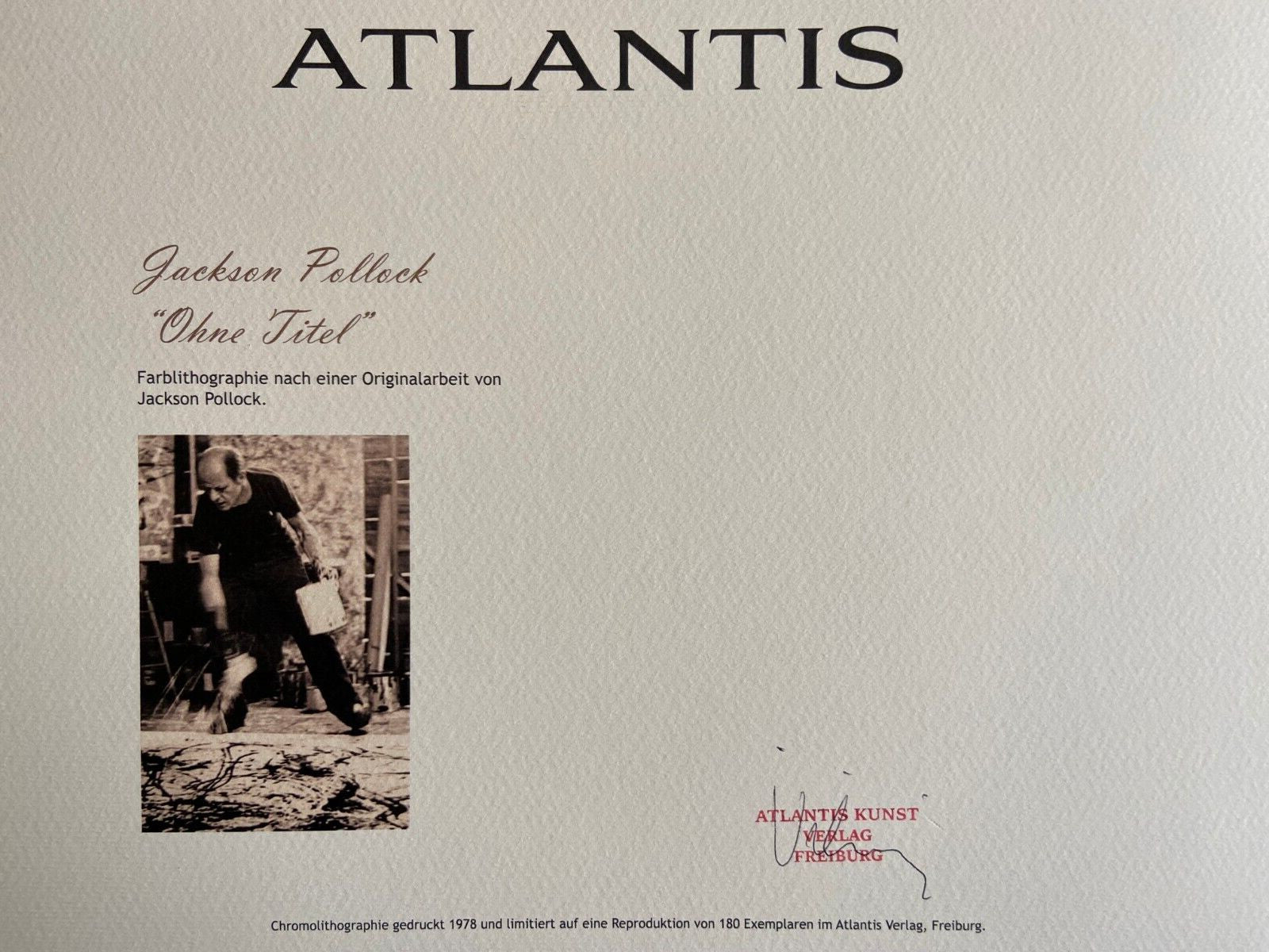 JACKSON Pollock " without title " Chromolithograph printed in 1978 in 180 copies by Atlantis Verlag, Freiburg 32 x 40 cm Signature JACKSON Pollock on the plate Embossed stamp and authentication by the publishing house Atlantis Kunst Verlag Freiburg JACKSON Pollock " without title" Chromolithograph printed in 1978 in 180 copies by Atlantis Verlag, Freiburg 32 x 40 cm Signature JACKSON Pollock on the plate Embossed stamp and authentication by the publishing house Atlantis Kunst Verlag Freiburg