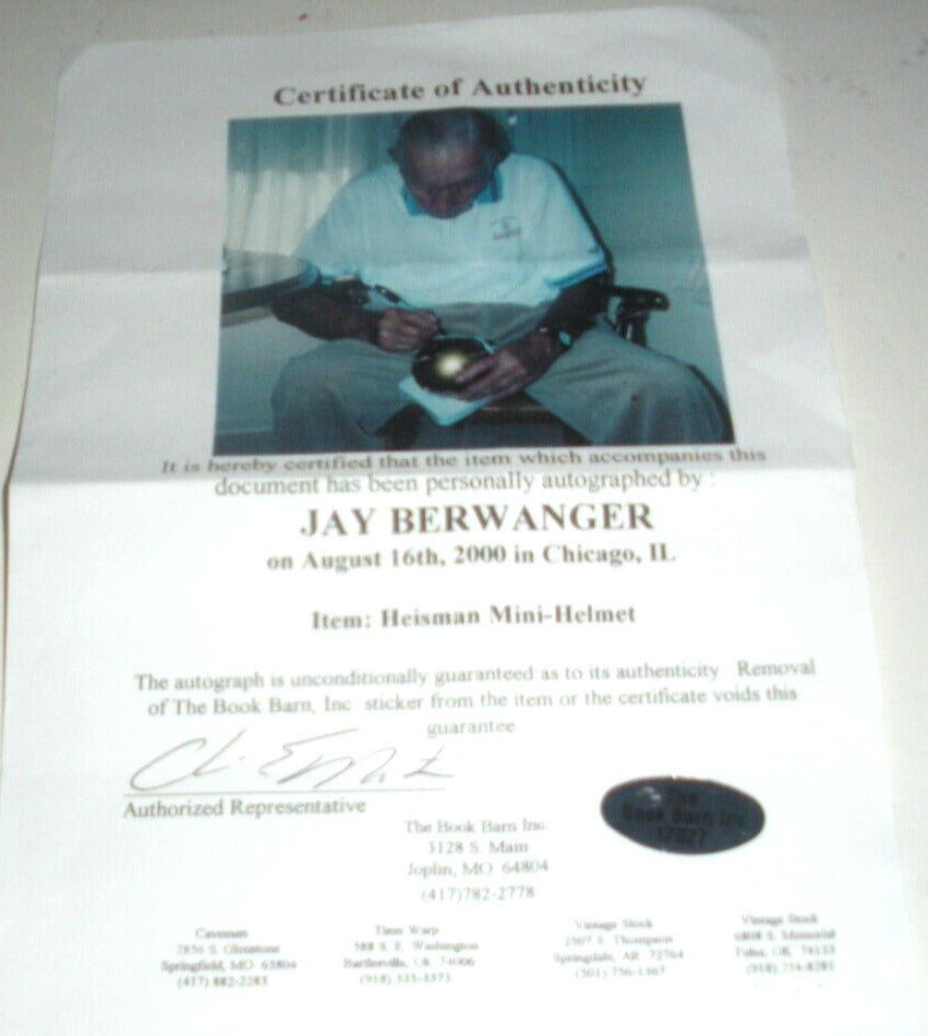 Jay Berwanger Chicago,Heisman 35 Gtsm/Coa Signed