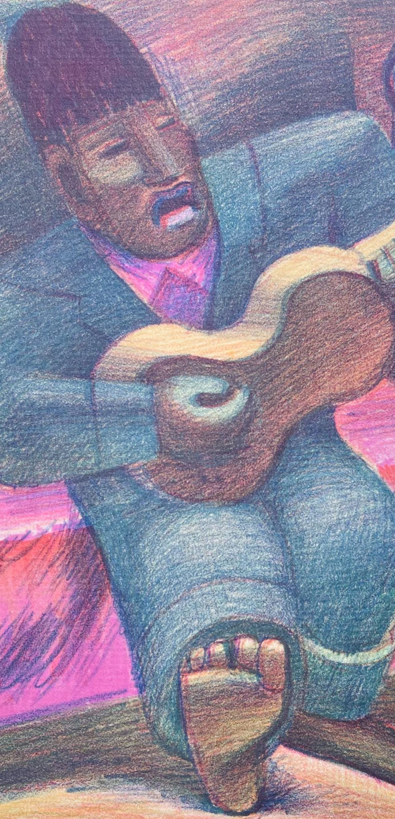 Lithograph on vlin paper. Paper size: 11 x 8.75 inches. Excellent condition. Unsigned and unnumbered, as issued. Notes: From the album, Picture Book, 32 Original Lithographs By Jean Charlot, 1933. Published by John Becker, New York; printed by Will A. Kistler Company, Los Angeles, under the technical supervision of Will A. Kistler, Los Angeles, 1933. Excerpted from the album, These 32 original chromolithographs were drawn directly on the plates by Jean Charlot, and printed under the technical supervision of Will A. Kistler. Format designed by Merle Armitage. Type handset by Lynton R. Kistler. Printed at the plant of the Will A. Kistler Company. Offset presswork by Edward Broughton. Limited to D numbered copies signed by Jean Charlot, Lynton R. Kistler and Merle Armitage. Copies I to XXXII inclusive contain a set of the progressive proofs. Los Angeles, 1933.