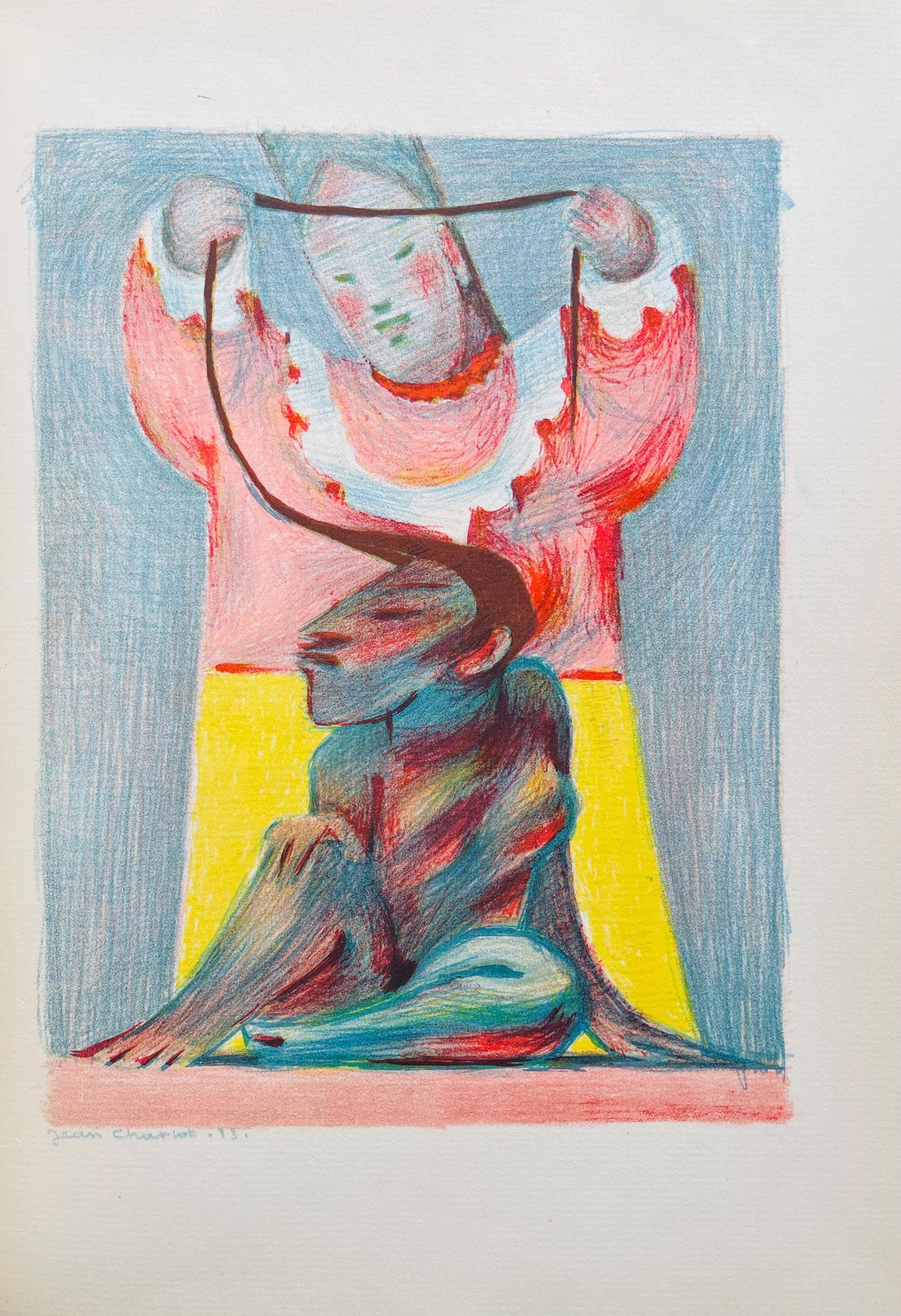 Lithograph on vlin paper. Paper size: 11 x 8.75 inches. Excellent condition. Unsigned and unnumbered, as issued. Notes: From the album, Picture Book, 32 Original Lithographs By Jean Charlot, 1933. Published by John Becker, New York; printed by Will A. Kistler Company, Los Angeles, under the technical supervision of Will A. Kistler, Los Angeles, 1933. Excerpted from the album, These 32 original chromolithographs were drawn directly on the plates by Jean Charlot, and printed under the technical supervision of Will A. Kistler. Format designed by Merle Armitage. Type handset by Lynton R. Kistler. Printed at the plant of the Will A. Kistler Company. Offset presswork by Edward Broughton. Limited to D numbered copies signed by Jean Charlot, Lynton R. Kistler and Merle Armitage. Copies I to XXXII inclusive contain a set of the progressive proofs. Los Angeles, 1933.