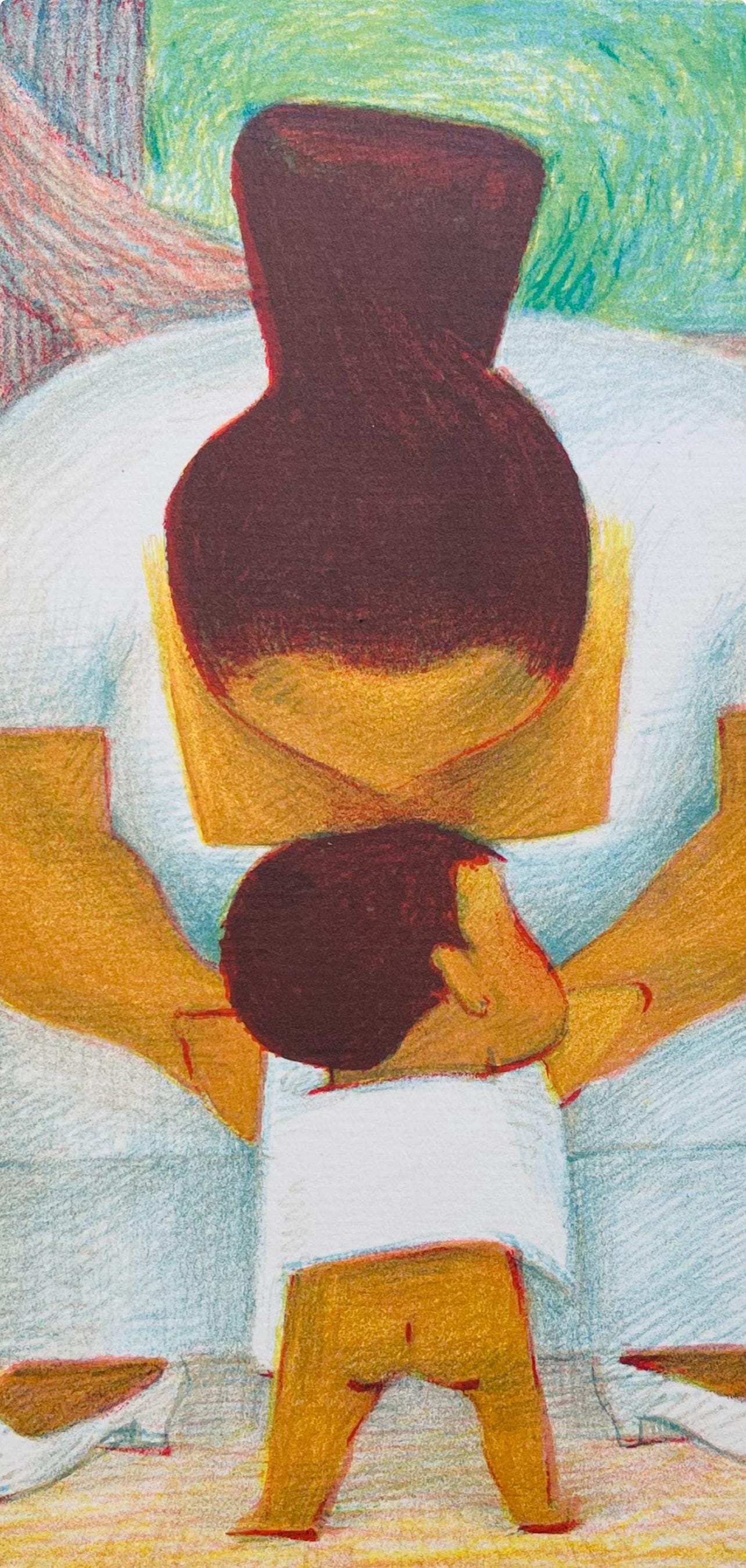 Lithograph on vlin paper. Paper size: 11 x 8.75 inches. Excellent condition. Unsigned and unnumbered, as issued. Notes: From the album, Picture Book, 32 Original Lithographs By Jean Charlot, 1933. Published by John Becker, New York; printed by Will A. Kistler Company, Los Angeles, under the technical supervision of Will A. Kistler, Los Angeles, 1933. Excerpted from the album, These 32 original chromolithographs were drawn directly on the plates by Jean Charlot, and printed under the technical supervision of Will A. Kistler. Format designed by Merle Armitage. Type handset by Lynton R. Kistler. Printed at the plant of the Will A. Kistler Company. Offset presswork by Edward Broughton. Limited to D numbered copies signed by Jean Charlot, Lynton R. Kistler and Merle Armitage. Copies I to XXXII inclusive contain a set of the progressive proofs. Los Angeles, 1933.