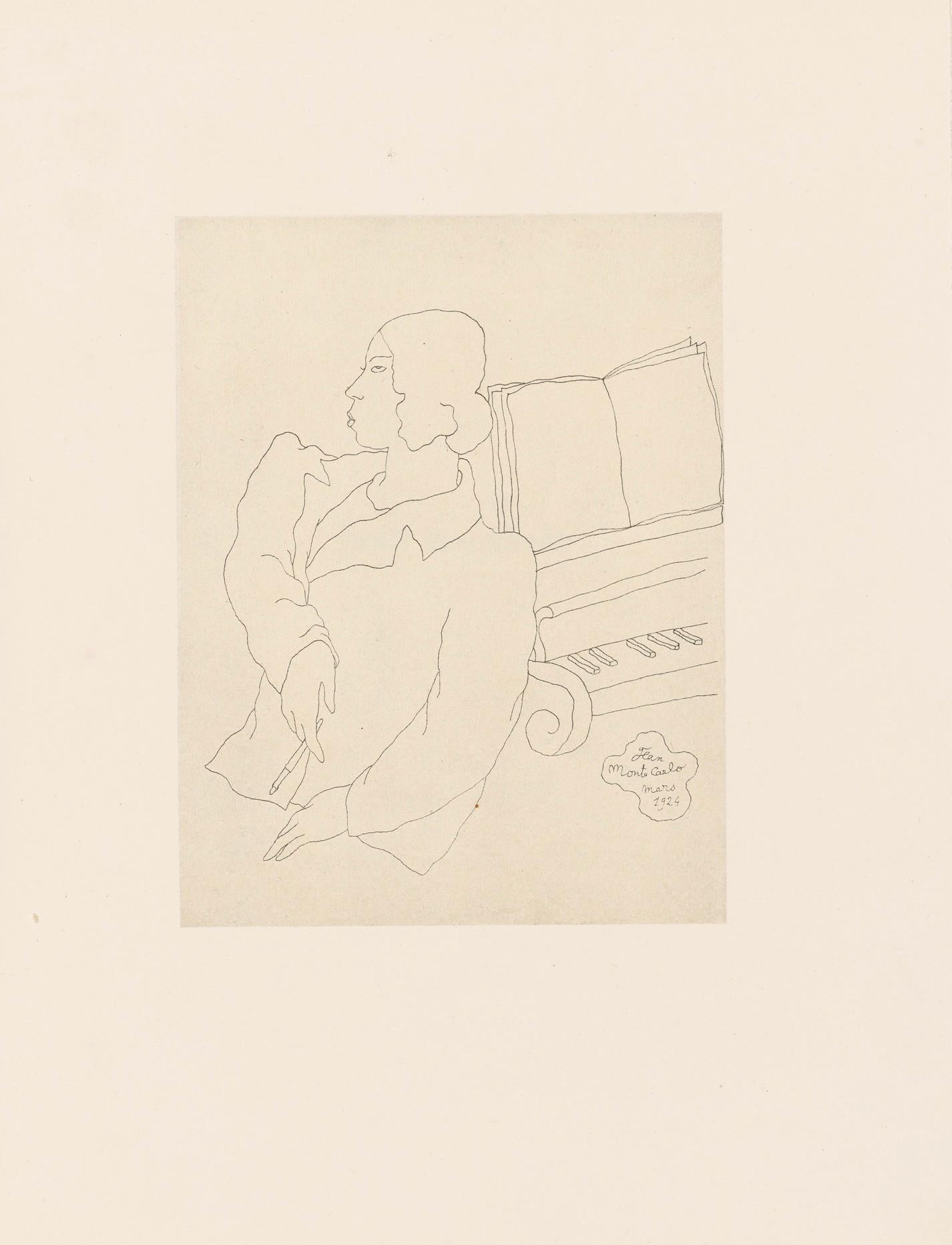 Lithograph and stencil on papier vlin des Manufactures d'Arches paper. Unsigned and unnumbered, as issued. Paper size: 11 x 8.875 inches. Excellent condition. Notes: From the volume, Les Biches, 1924. Published by ditions des Quatre Chemins, Paris; printed by Ateliers Daniel Jacomet & Cie, Paris, December 10, 1924. Excerpted from the volume (translated from French), dition de grand luxe, in-4 carr, printed in CCLX numbered examples, including LX, numbered from I to LX, on papier de Hollande van Gelder, and numbered from LXI to CCX, on papier vlin des Manufactures d'Arches, plus LXXV examples, hors commerce.