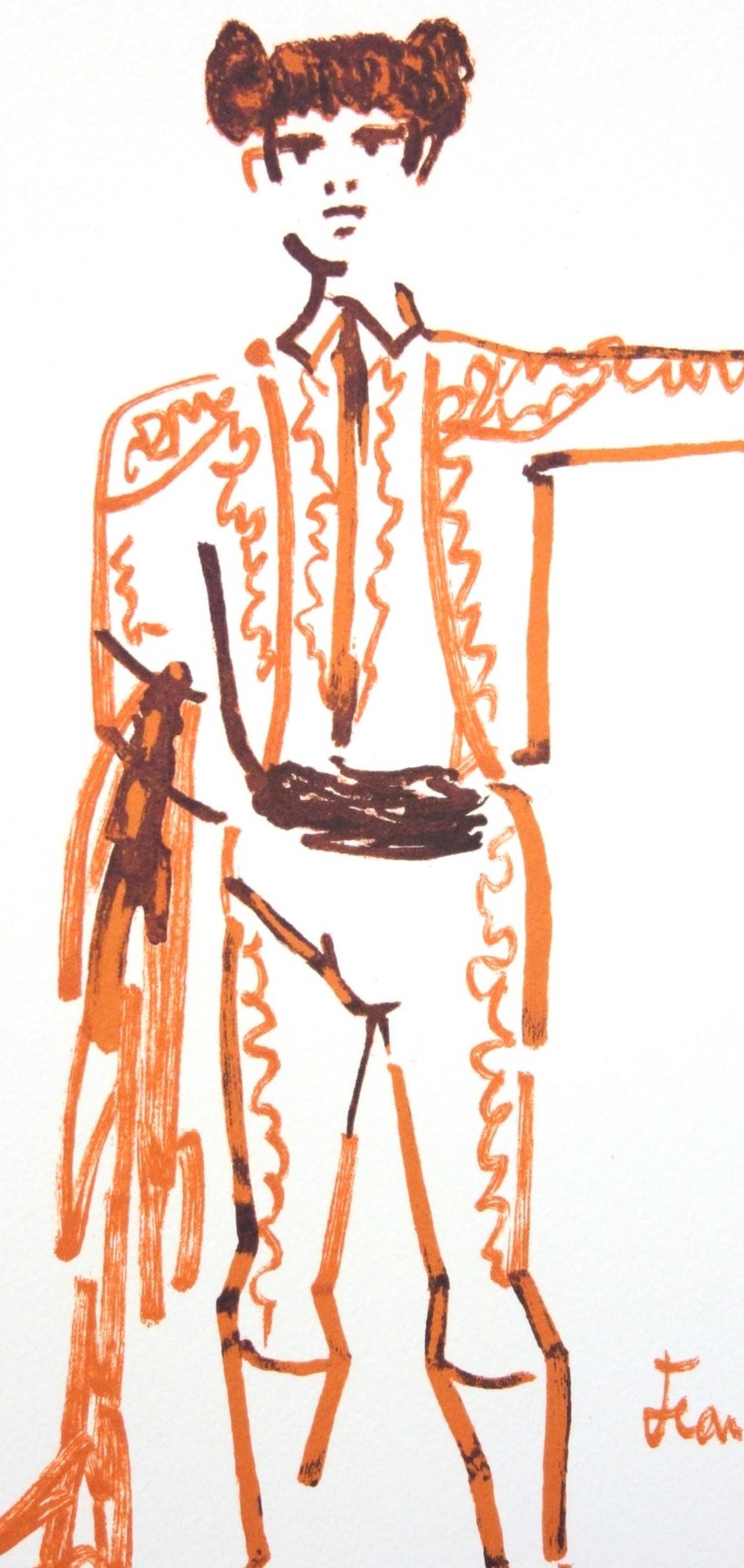 Lithograph on vlin d'Arches paper. Paper size: 15.5 x 11.5 inches. Excellent condition. Inscription: signed in the plate and unnumbered, as issued. Notes: from the folio, Taureaux, Lithographies de Jean Cocteau, 1965. Published by Michle Trinckvel, Paris; printed by Mourlot Frres, Paris, July 1965. Excerpted from the folio (translated from French), Bulls for Pedres - Curro Romero, El Cordobes. The present work constitutes the original edition, achieved printing in July 1965 by Dominique Viglino in Bourg-la-Reine; the lithographies were drawn on the presses of Fernand Mourlot in Paris; lithographs on case rendered by Henri Renaud. Justification of the draw: 16 examples on Japon nacr with an original color drawing of Jean Cocteau, a suite of the illustrations on grand Vlin d'Arches and a suite on grand Vlin de Rives, numbered from 1 to 16. 16 examples on Japon nacr with an original drawing in black and sepia by Jean Cocteau, a suite of illustrations on large Vlin d'Arches and a suite on large Vlin de Rives, numbered from 17 to 32. 48 examples on Vlin de Rives with a series of illustrations on grand Vlin d'Arches, numbered from 33 to 80. 120 examples on Vlin de Rives, including the final state of the illustrations, numbered from 81 to 200. In addition, some examples reserved for the collaborators of the edition were drawn.