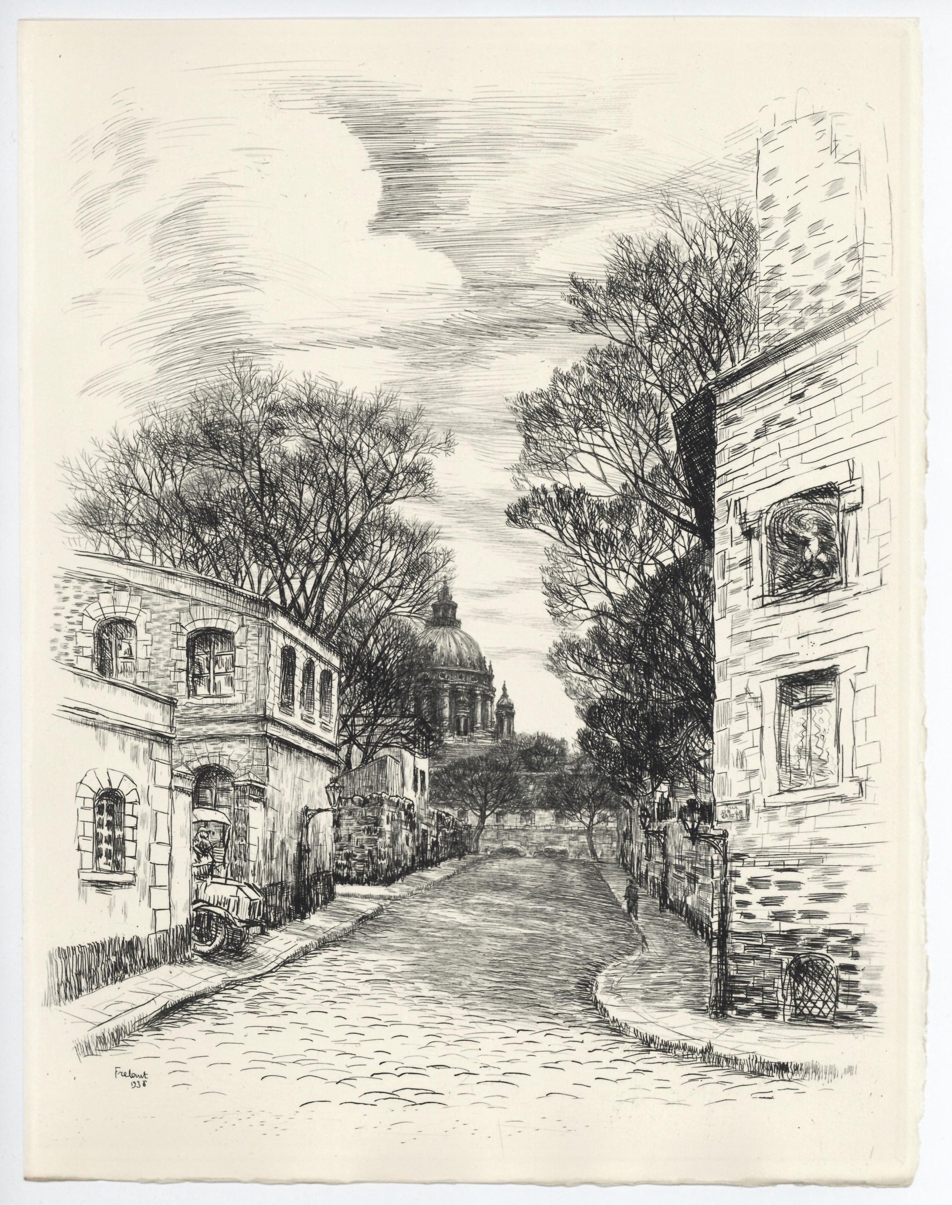 Etching on vlin Canson et Montgolfier paper. Unsigned and unnumbered. Paper Size: 13.5 x 10.5 inches. Excellent condition. Notes: From the folio, A La gloire Paris, 1937. Published by L'Imprimerie Daragns, Paris; printed by Jean Gabriel Daragns, Paris, July 14, 1937. Excerpted from the folio (translated from French), The Glory of Paris. This dedicated album by the Paris municipality was written, illustrated, engraved and printed in the year MCMXXXVII. This album was d......