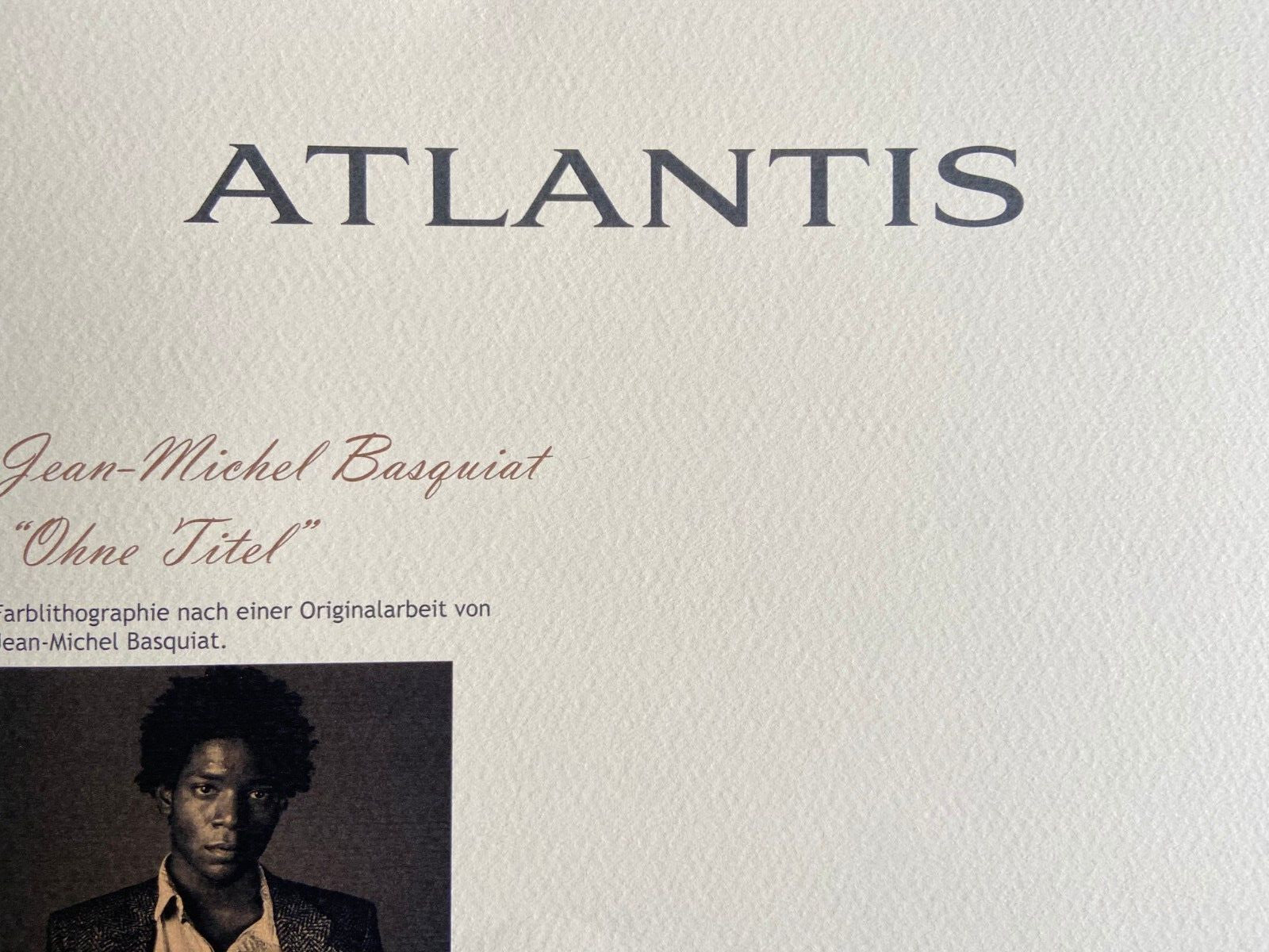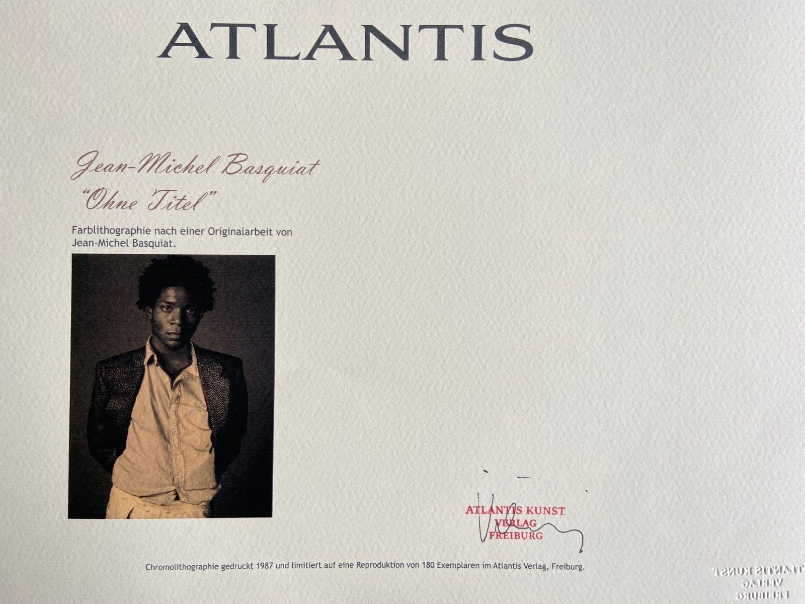 Jean-Michel Basquiat " without title " Chromolithograph printed in 1987 in 180 copies by Atlantis Verlag, Freiburg 32 x 45 cm Jean-Michel Basquiat signature on the plate Embossed stamp and authentication by the publishing house Atlantis Kunst Verlag Freiburg Jean-Michel Basquiat " without title" Chromolithograph printed in 1987 in 180 copies by Atlantis Verlag, Freiburg 32 x 45 cm Jean-Michel Basquiat signature on the plate Embossed stamp and authentication by the publishing house Atlantis Kunst Verlag Freiburg