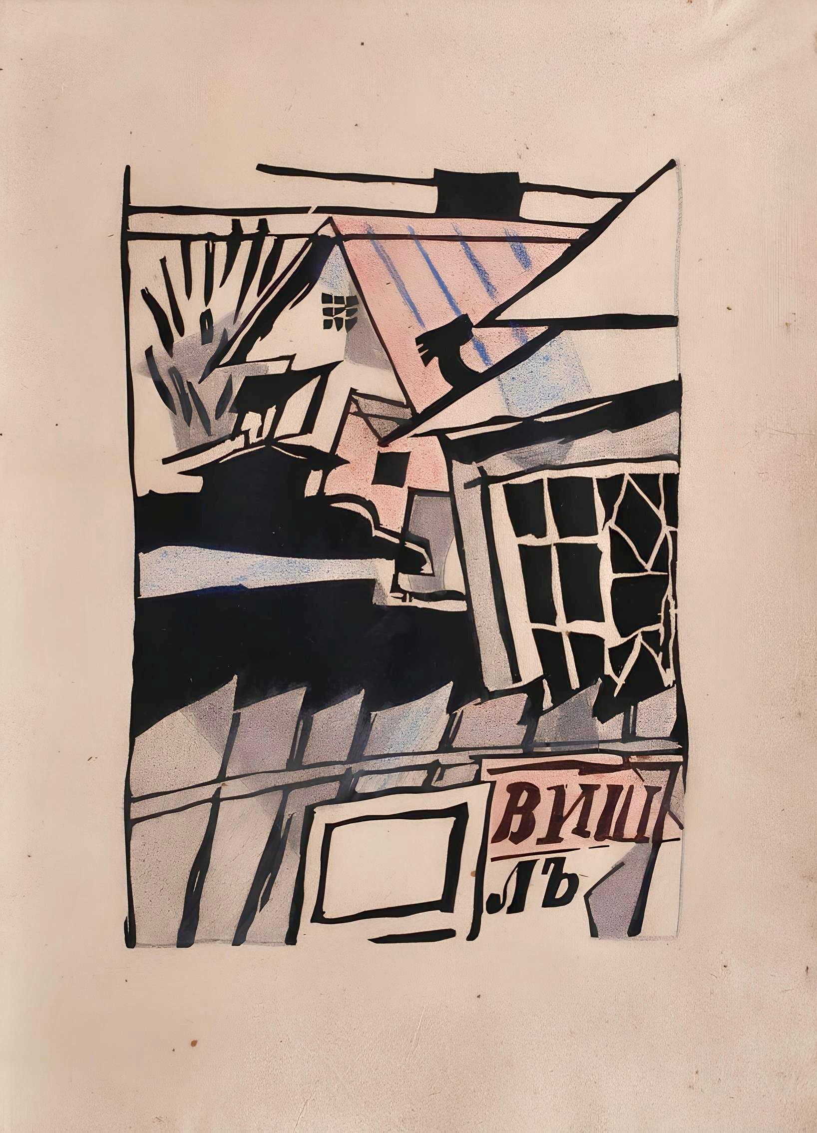 Linocut on vlin verg ancien paper. Paper size: 18.62 x 13.19 inches. Excellent condition. Unsigned and unnumbered, as issued. Notes: From the folio, Pougny, dix linogravures originales, 1964. Published by Au Vent d'Arles, Saint Paul de Vence; rendered by Cardin et Bogratchew, Paris; printed by Ateliers Rigal, Paris, 1964. Excerpted from the folio (translated from French), The original linocuts in this album were engraved by Pougny in Iningrad, Vitebsk and Berlin between 1914 and 1920. Each board was stenciled after the artist's original models by Cardin et Bogratchew. The hand-composed text in Vendme Corps 20 has been printed on papier havane satin by Ateliers Rigal who ensured the printing of the original linocuts on their arm presses. It has been shot: 5 examples of the linocuts on Japon imprial accompanied by a black suite of the first state, a definitive suite on papier havane satin, a definitive suite on verg ancien, and an original drawing by Pougny, numbered from 1 to 5; 20 examples of the linocuts on Auvergne ancien accompanied by a black suite of the first state, and a final suite on papier havane satin, numbered from 6 to 25. 140 examples of the linocuts on verg ancien, numbered from 26 to 165. 30 examples on havane satin, marked ??. 1 to ??. 30.