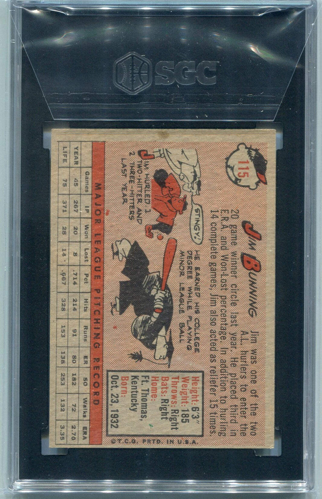 Jim Bunning 1958 Topps Card #115 Sgc Graded 6