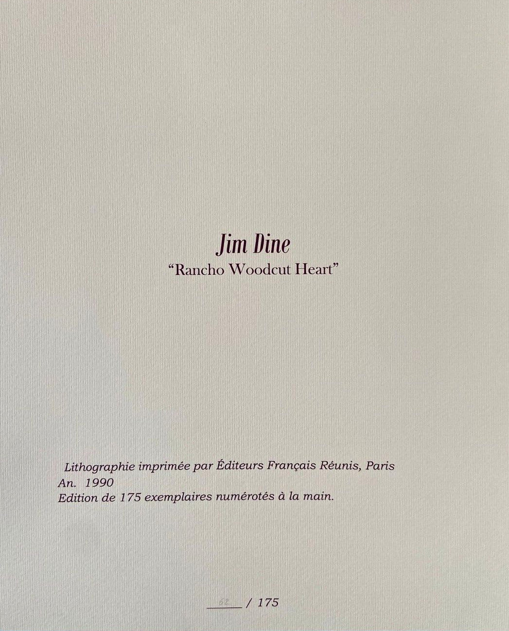 Jim Dine Lithograph COA Signed Limited Edition Certified Jim Dine "Rancho Woodcut Heart" Lithograph Printed by the French publishers gathered, Paris in 1990 I sign Jim Dine on the slab. The work measures 32x40 cm 175 specimens EFR, Paris Jim Dine "Rancho Woodcut Heart" Lithograph Printed by the French publishers gathered, Paris in 1990 I sign Jim Dine on the slab. The work measures 32x40 cm 175 specimens © EFR, Paris