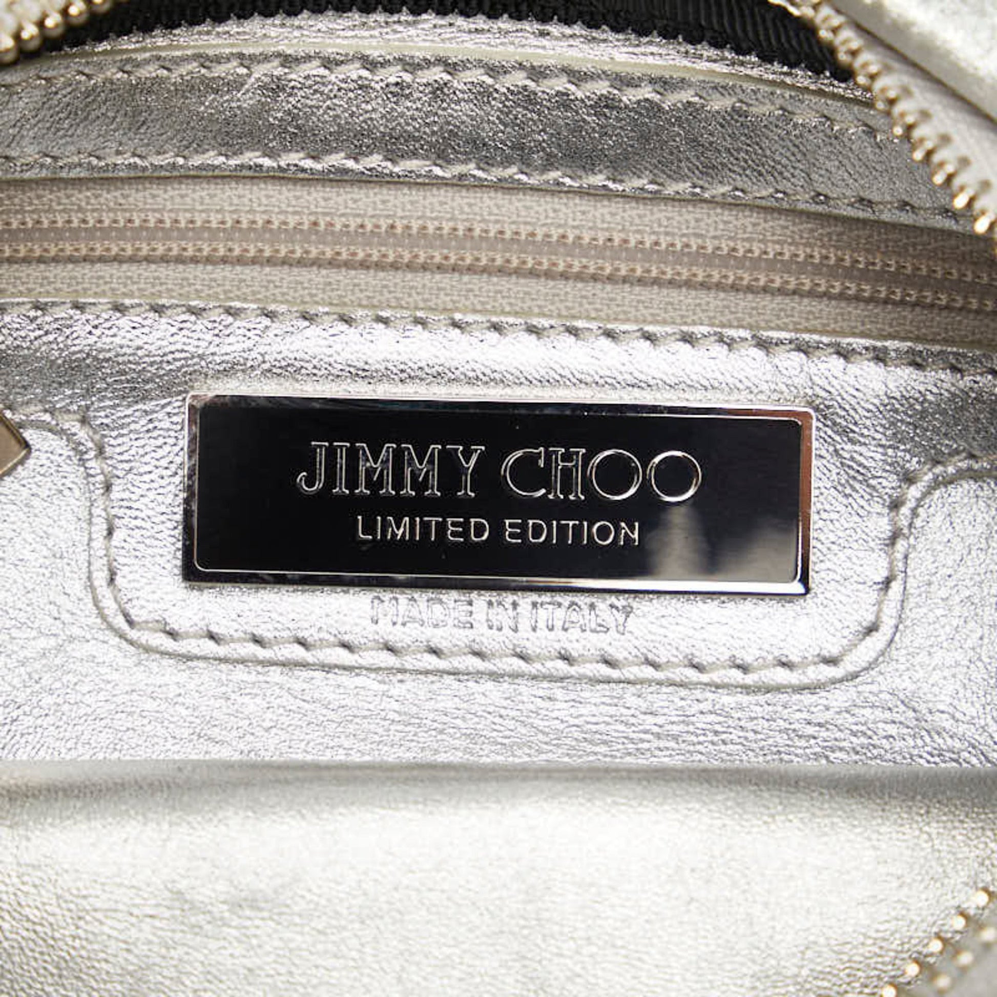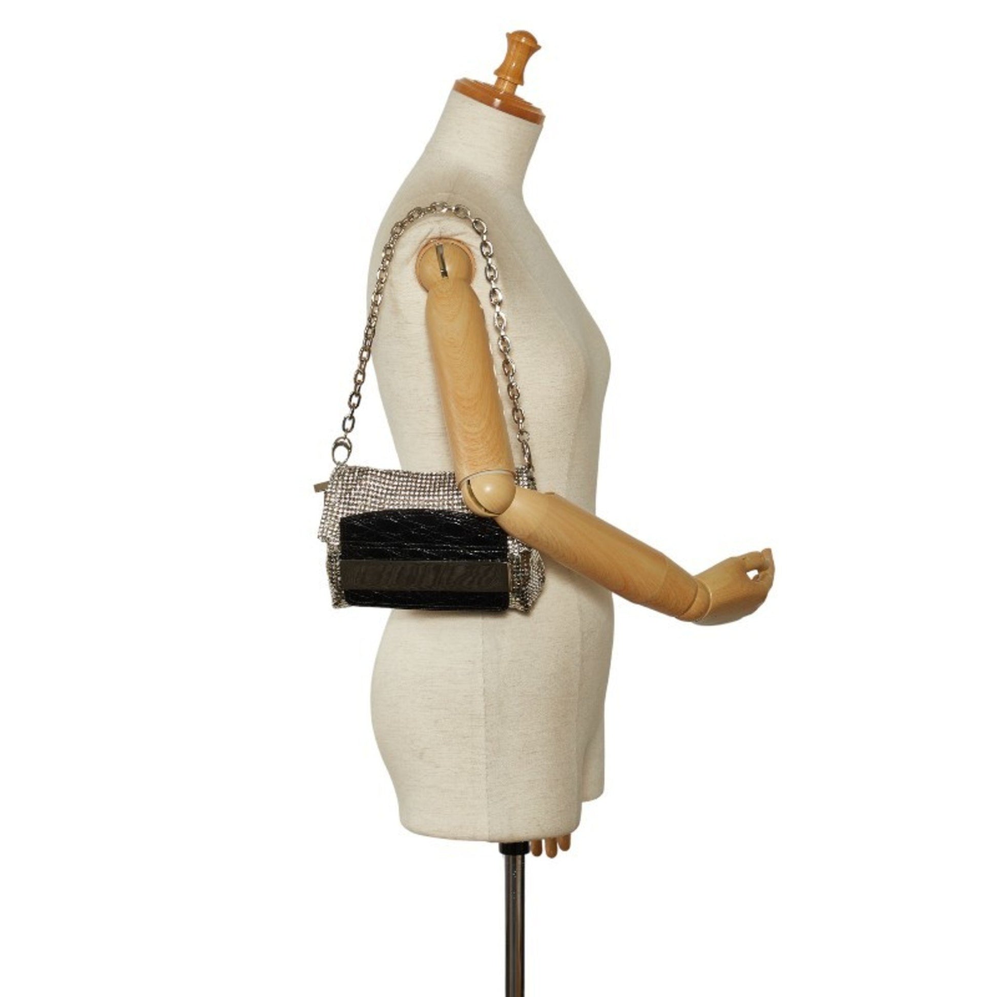 Jimmy Choo Crocodile Embossed Chain One Shoulder Bag Silver Black Leather Metal