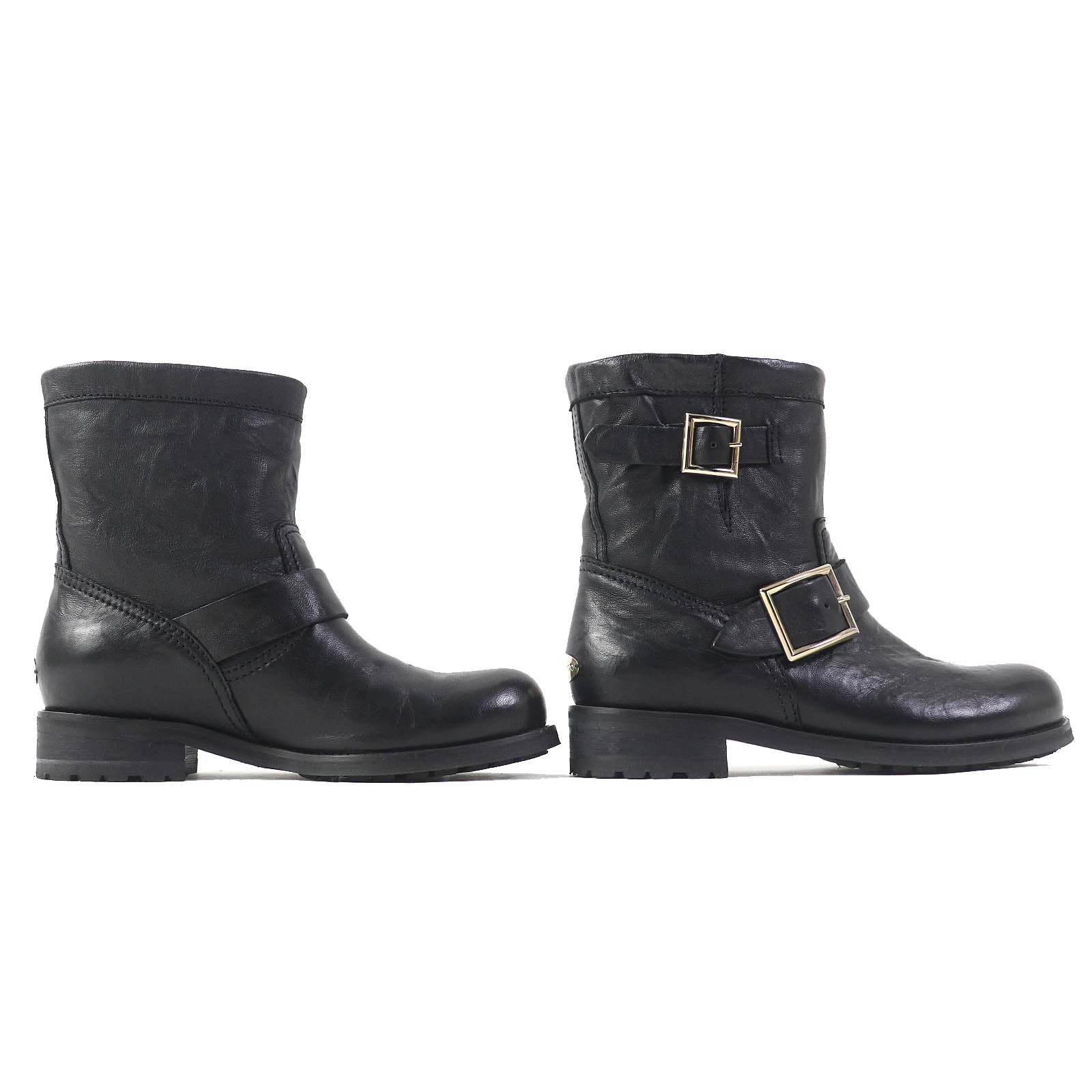 Jimmy Choo Short Boots Leather Black Biker Women 35 Secondhand