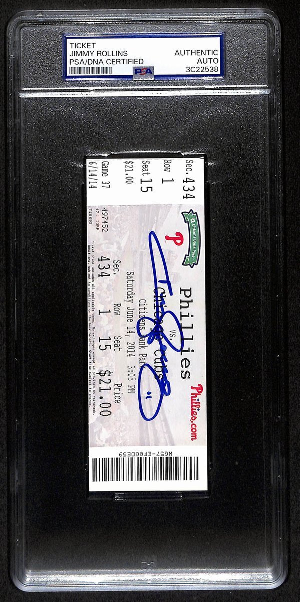 Jimmy Rollins Signed/Auto Full Ticket 6/14/2014 Phillies Vs. Cubs Psa/Dna 193385