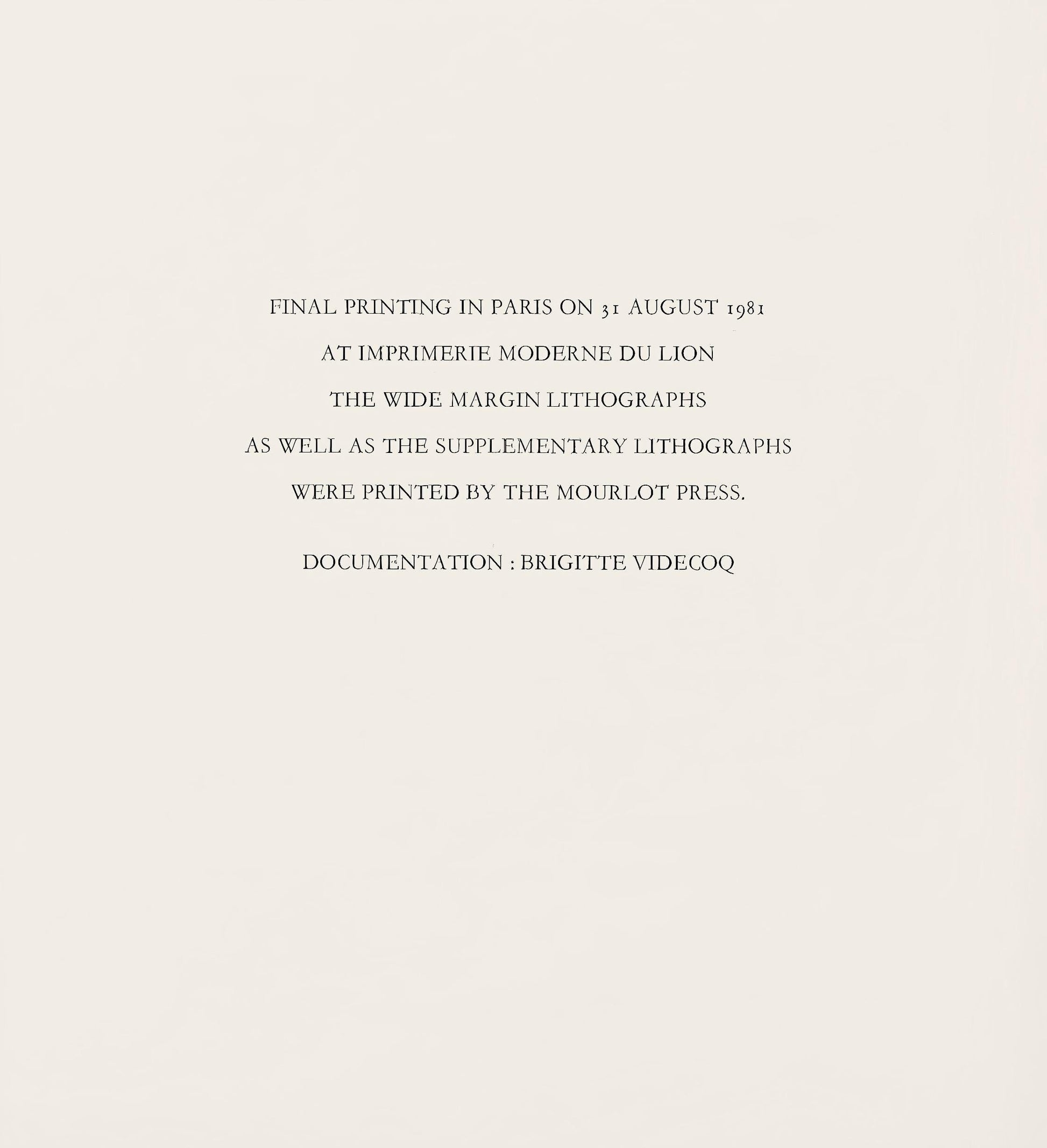 Excerpted from the volume, Final printing in Paris on 31 August 1981 at Imprimerie Moderne du Lion.