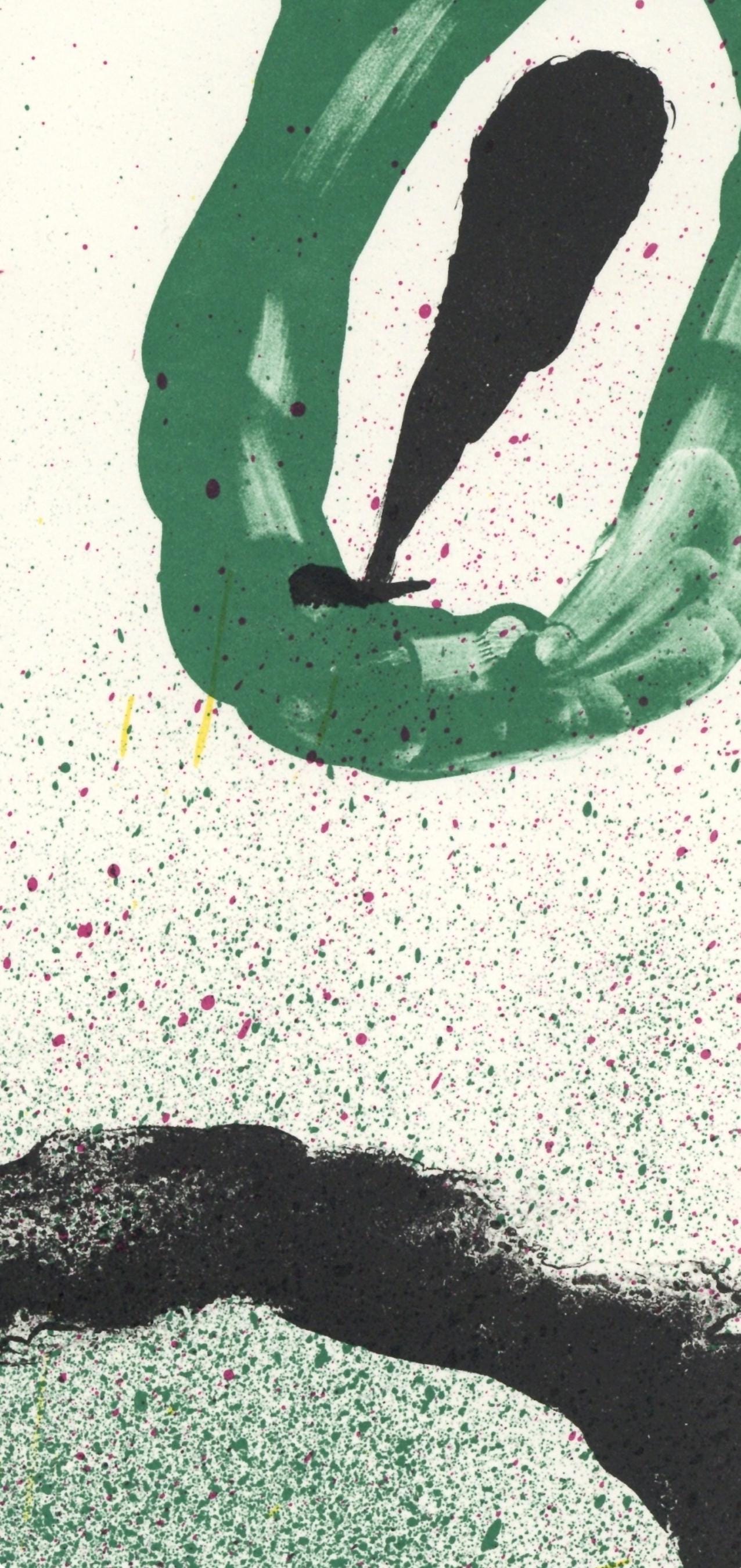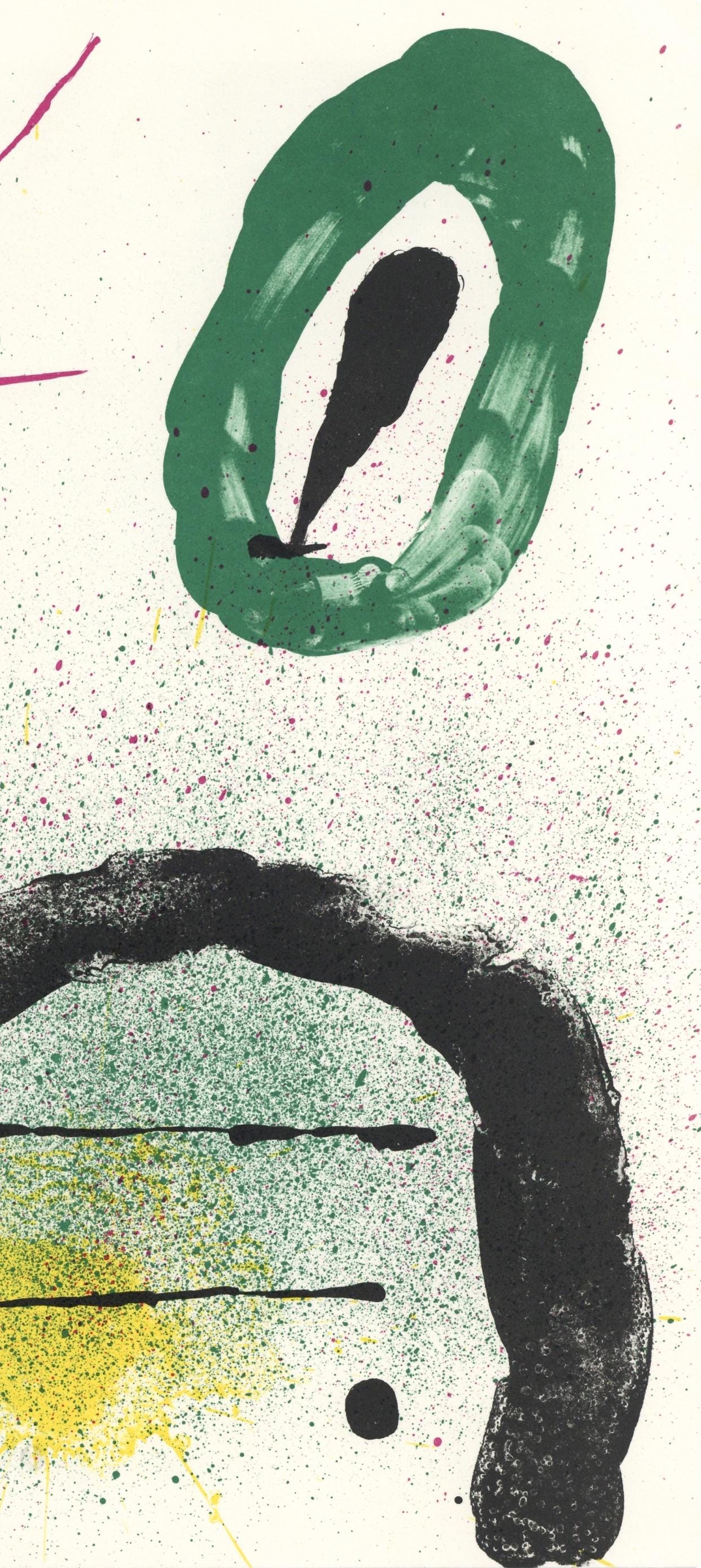 Lithograph on vlin paper. Paper size: 15 x 11 inches. Excellent condition. Inscription: Unsigned and unnumbered, as issued. Notes: From the volume, Derrire le miroir, N 139-140, 1963. Published by Aim Maeght, diteur, Paris; printed by ditions Pierre Feu, Galerie Maeght, Paris, 1965. Excerpted from the volume (translated from French), The illustrations in this issue are original lithographs by Joan Mir taken in the workshops of Maeght imprimour. This number of "Behind ......
