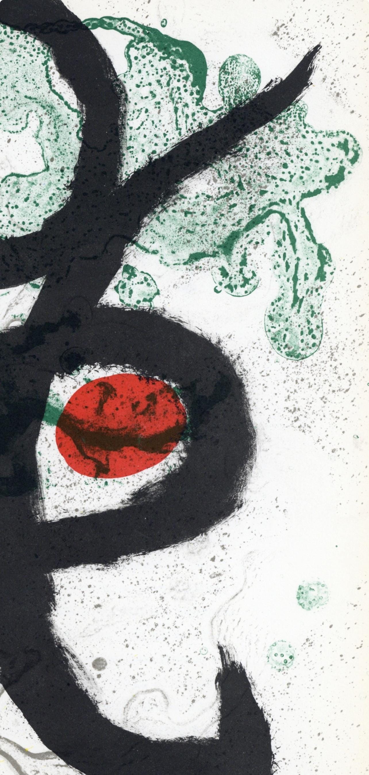 Lithograph on vlin paper. Paper size: 15 x 11 inches. Excellent condition. Inscription: Unsigned and unnumbered, as issued. Notes: From the volume, Derrire le miroir, N 139-140, 1963. Published by Aim Maeght, diteur, Paris; printed by ditions Pierre Feu, Galerie Maeght, Paris, 1965. Excerpted from the volume (translated from French), The illustrations in this issue are original lithographs by Joan Mir taken in the workshops of Maeght imprimour. This number of "Behind ......