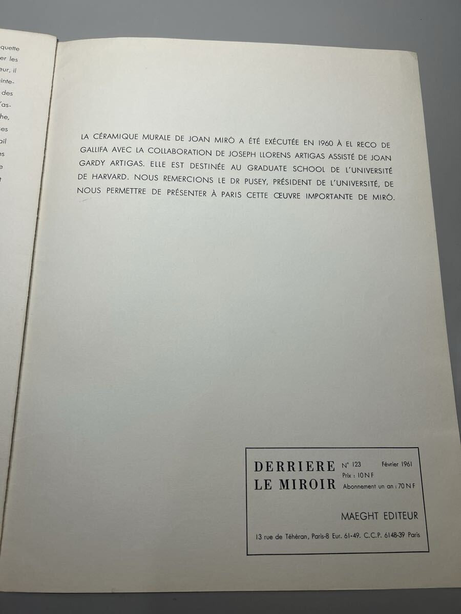 Joan Miro Derriere Le Miroir No 123 Miro. Ceramique Pour Harvard 1961 Lithograph