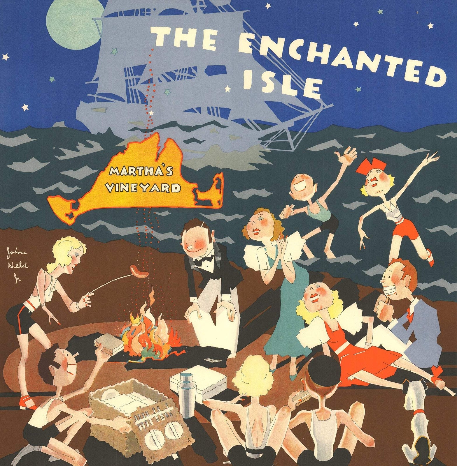 John Jr. Held Martha'S Vineyard " Offset Lithograph Vintage
