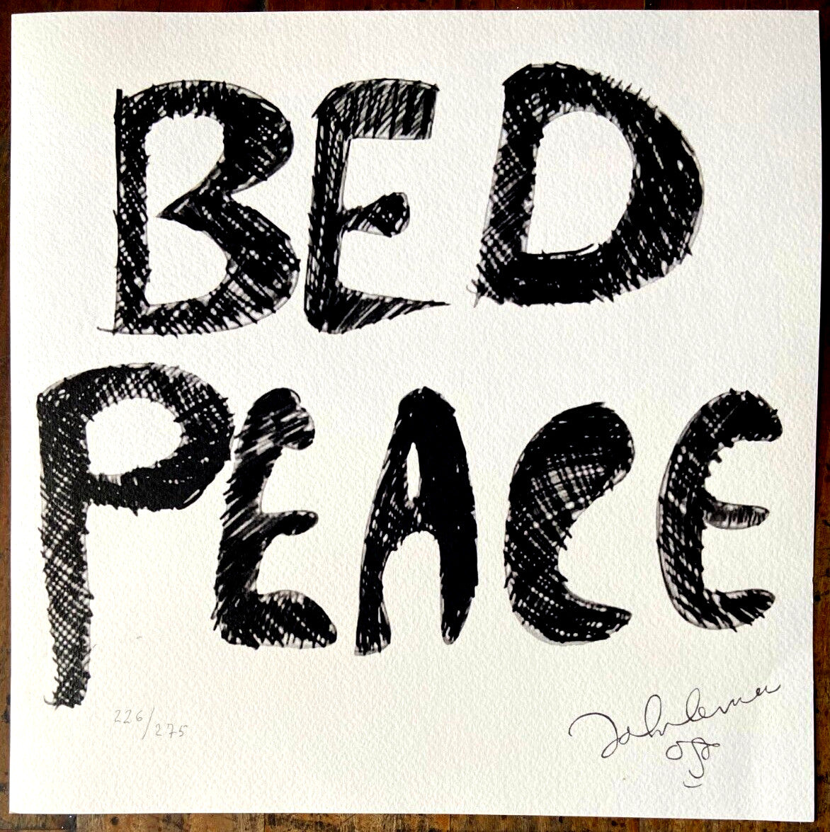 John Lennon & Yoko Ono, Lithograph 1986, 275 Ex (Paul McCartney Bob Dylan) John Lennon & Yoko Ono "Bed Peace " Lithograph of an work by John Lennon & Yoko Ono, printed in 1986 32 x 32 cm 275 hand numbered specimens Signature John Lennon on the slab Birkhuser Kunstverlag, Basel John Lennon & Yoko Ono "Bed Peace" Lithograph of an work by John Lennon & Yoko Ono, printed in 1986 32 x 32 cm 275 hand numbered specimens Signature John Lennonon the slab Birkhuser Kunstverlag, Basel