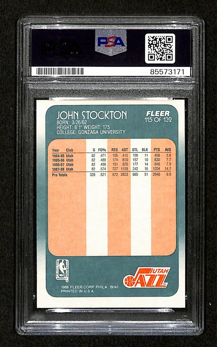 John Stockton Hof Signed/Auto On Card 1988 Fleer Rc Card #115 Psa/Dna 198724
