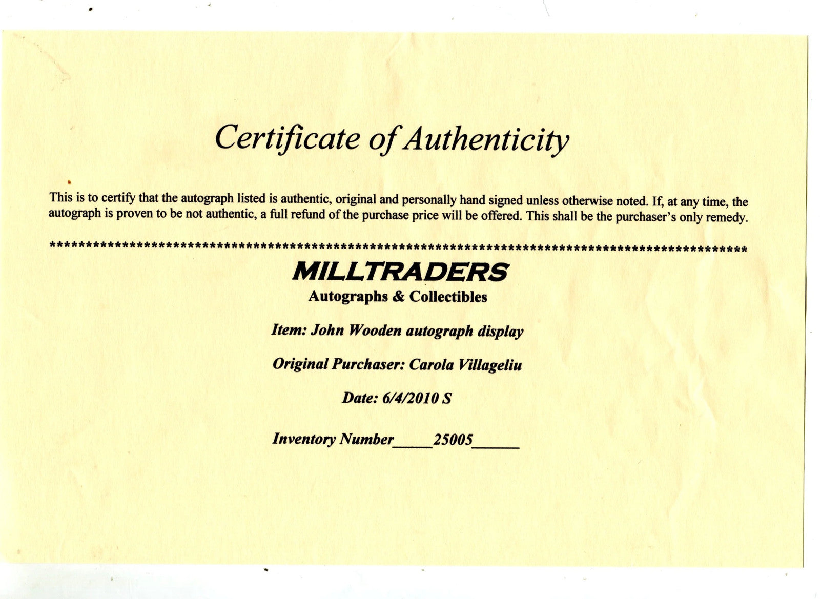 John Wooden Autographed 8X10 Photo