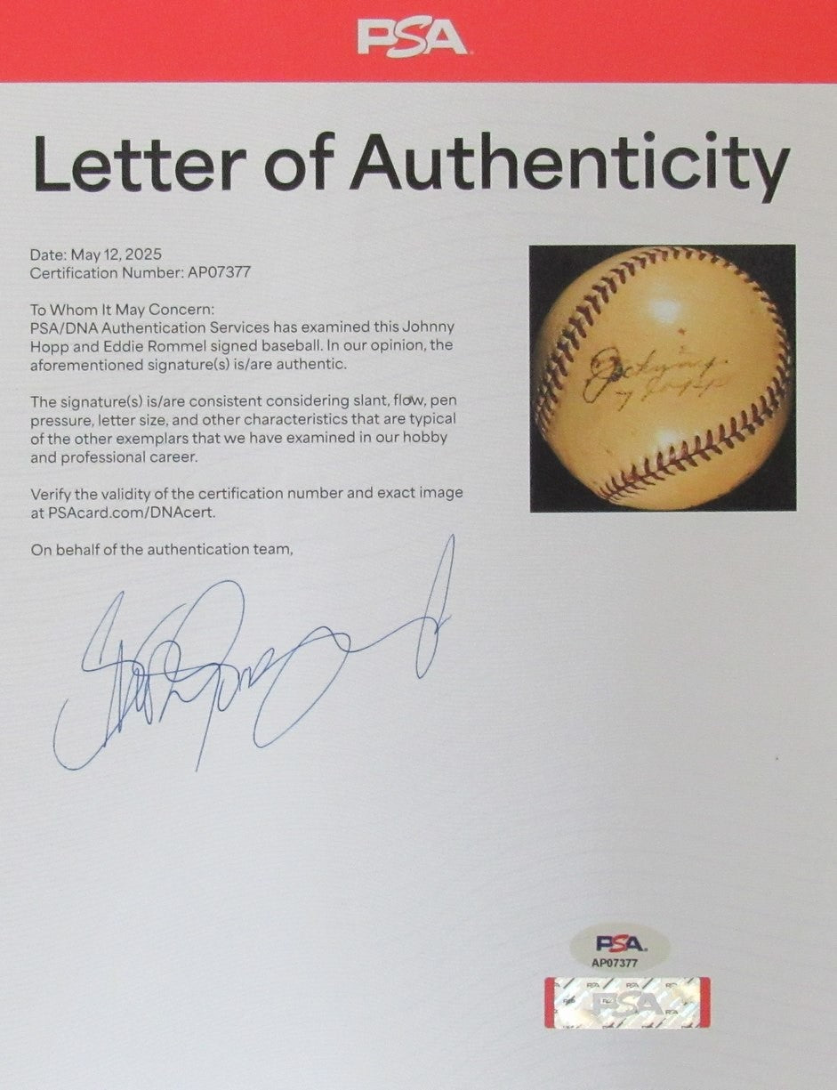 Johnny Hopp/Eddie Rommel Dual-Signed/Auto Official Baseball Psa/Dna 196417